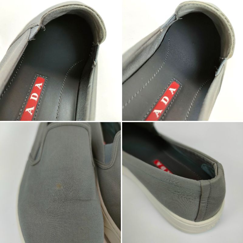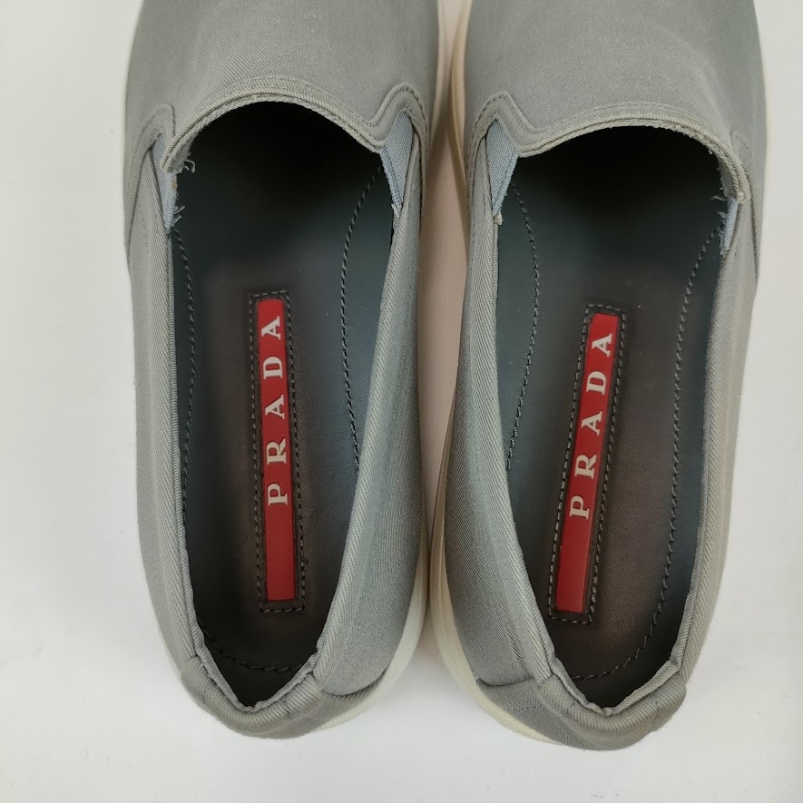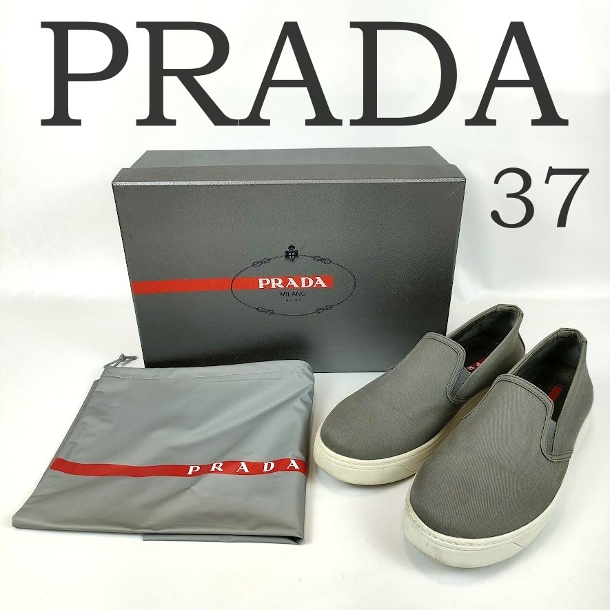 PRADA プラダ スニーカー スリッポン シューズ 靴 サイズ37 グレー キャンバス 箱 保存袋 3S5802 レディース 24cm相当 ブランド 中古