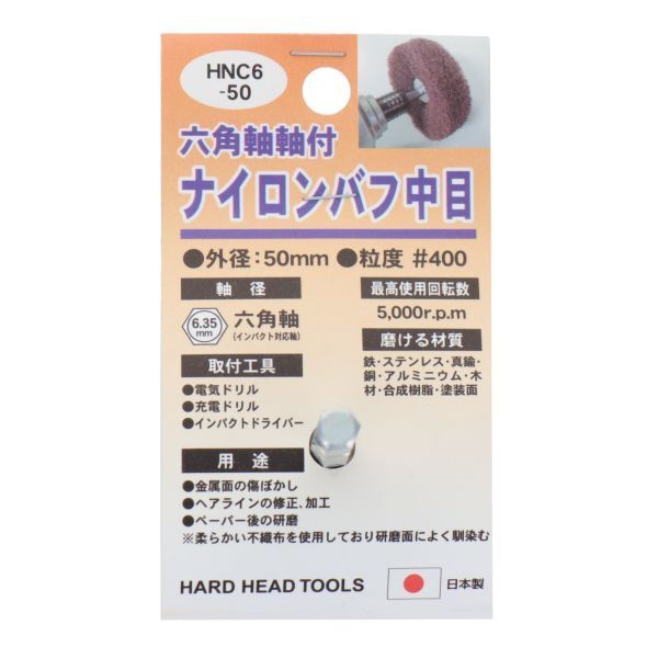 日本製 H&H 六角軸軸付ナイロンバフ中目 #400 50mm HNC6-50 ※S72016