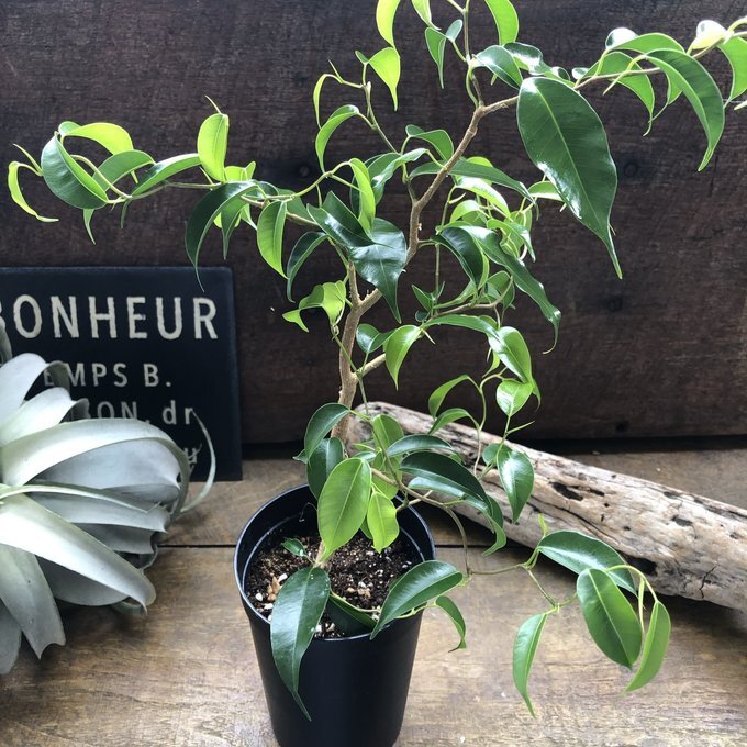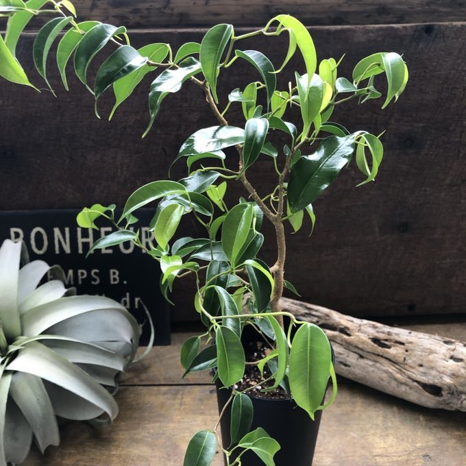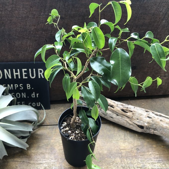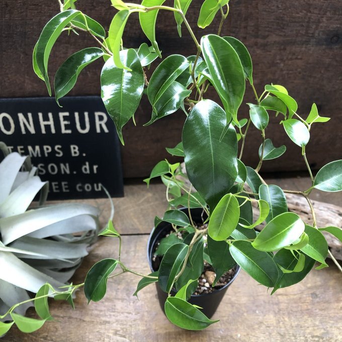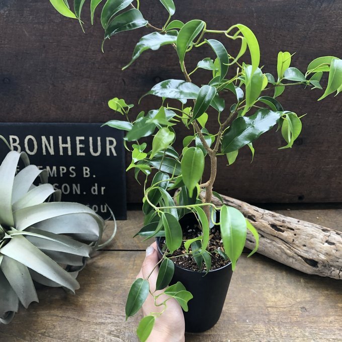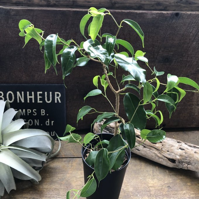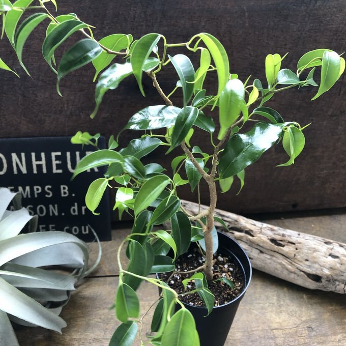 ご覧頂きありがとうございます。 フィカスの『ウィアンディ』入荷しました。 ベンガレンシスは育てやすくて人気の観葉植物、フィカス属ゴムの木の仲間です。 希少な雲龍性のフィカス・ウィアンディはレア品種でなかなか手に入りません。 特にベンガレンシスは、葉色といい、葉の適度な光沢といい、個性的な樹形といい、どんな部屋に置いてもなじみやすいインテリアグリーンです。 フィカスベンガレンシスの花言葉は、「長寿」・「永遠の幸せ」です。 神話には「望みを叶える木」として登場しています 縁起の良い花言葉を持つフィカスベンガレンシスは、風水的にも大変良い効果があると言われています。 フィカスベンガレンシスの丸みをおびた葉には「気持ちを落ち着かせる効果」や「リラックス効果」があると言われています。 同じものは二つとない、オンリーワンのベンガレンシスをお楽しみください(≧∀≦) 3号ポット 鉢そこから高さ約40〜50cmです。 曲がり木具合はその子によって写真のように個性があります。 育て方 表土が乾いてからたっぷりと水やりをしますが、基本的には少し乾燥気味に育ててください。とくに冬季は休眠期なので、より乾燥気味にするといいでしょう。 多少の耐陰性があるので、カーテン越しの明るい日陰程度の場所でも育ちますが、直射日光を避けた、日当たりが良い場所で育てると、葉っぱの色がよくでます。