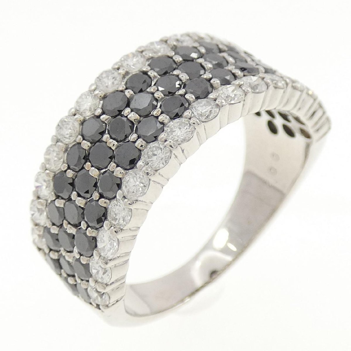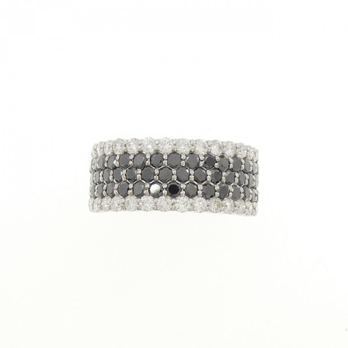 照りの良いブラックダイヤモンドがあしらわれたリング。 シックな装いに似合いそうなジュエリーです。
