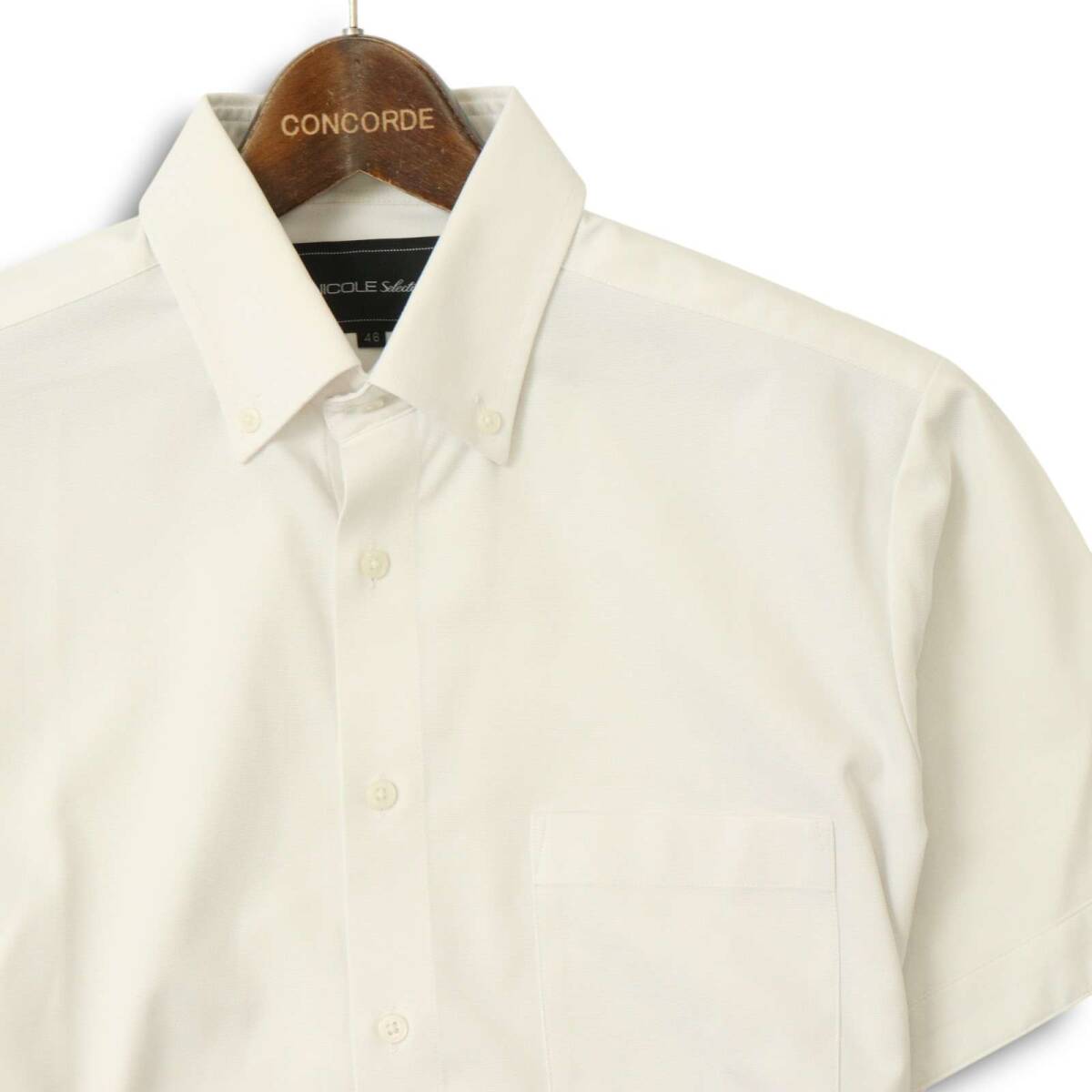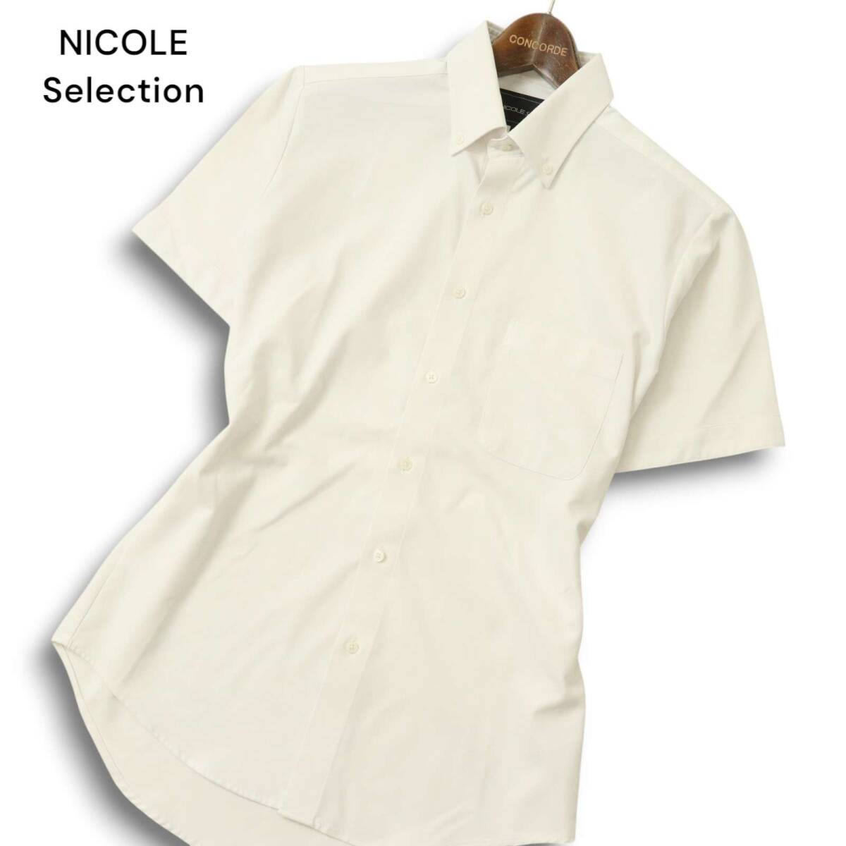 NICOLE Selection ニコル セレクション 春夏★ 半袖 ボタンダウン スリム シャツ Sz.46 メンズ 白