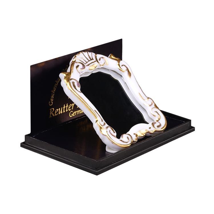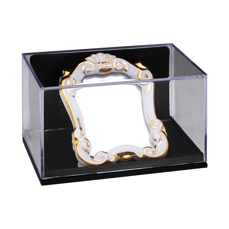 バロック調のミラーです。陶器製です。アクリルケース入りです(アクリルケースからは取り出せます。)貴方のバスルームに!サイズ:W48xD5xH60mm。アクリルケースのサイズ:W80xD55xH48mm