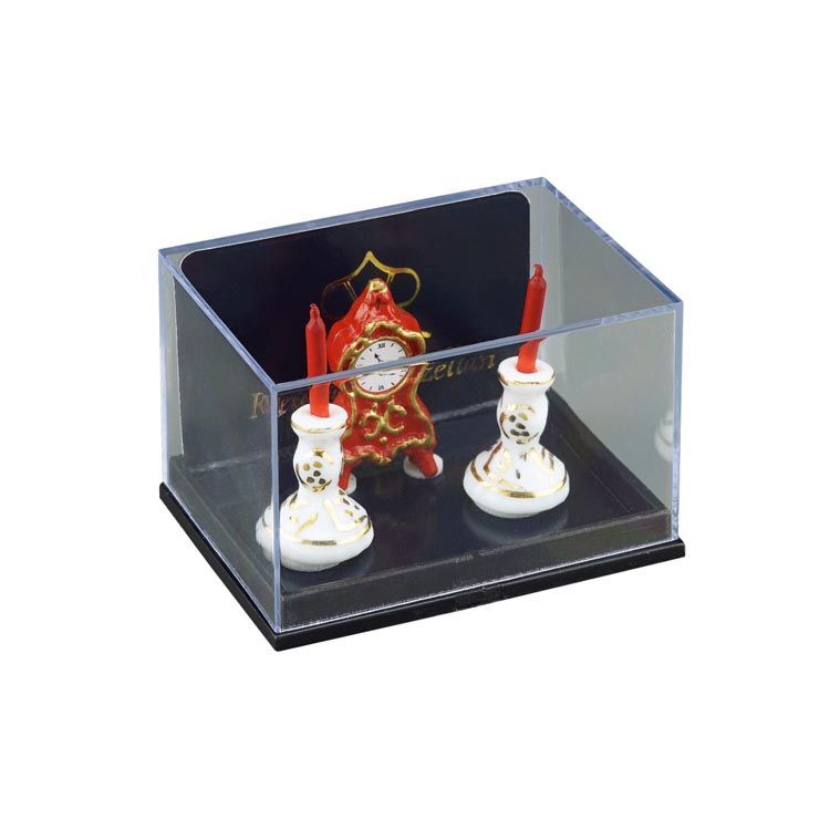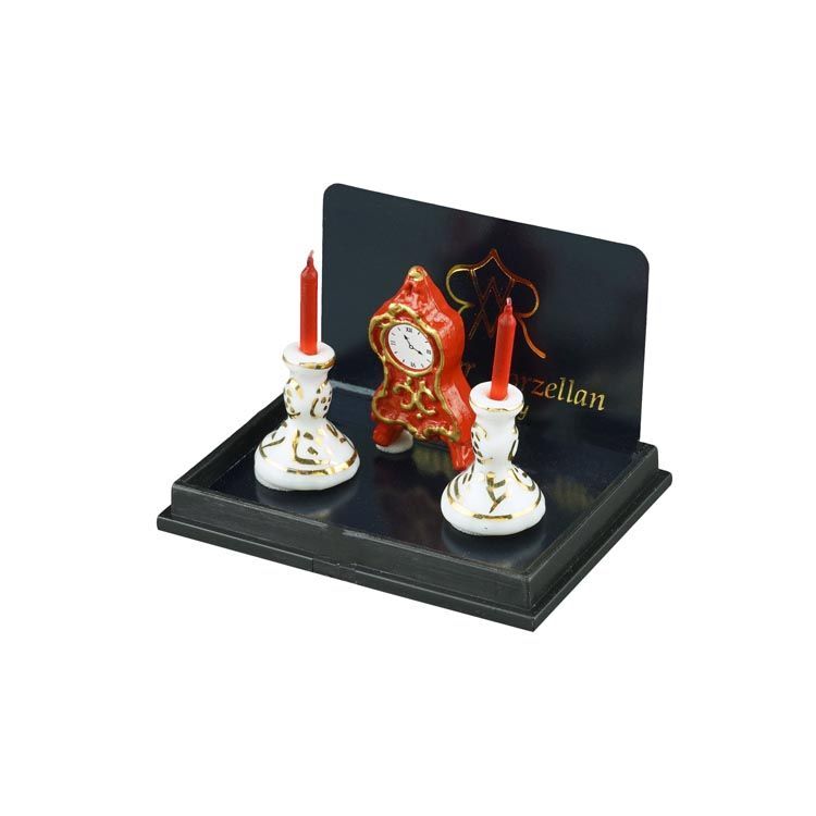 ドイツロイター社製のミニチュアです。赤いキャンドルで、暖炉のアクセントになりますね!ぜひ貴方のドールハウスにお役立てください。キャンドルの直径13ミリ、高さ約30ミリ。時計のサイズ:15x6xH28ミリ。