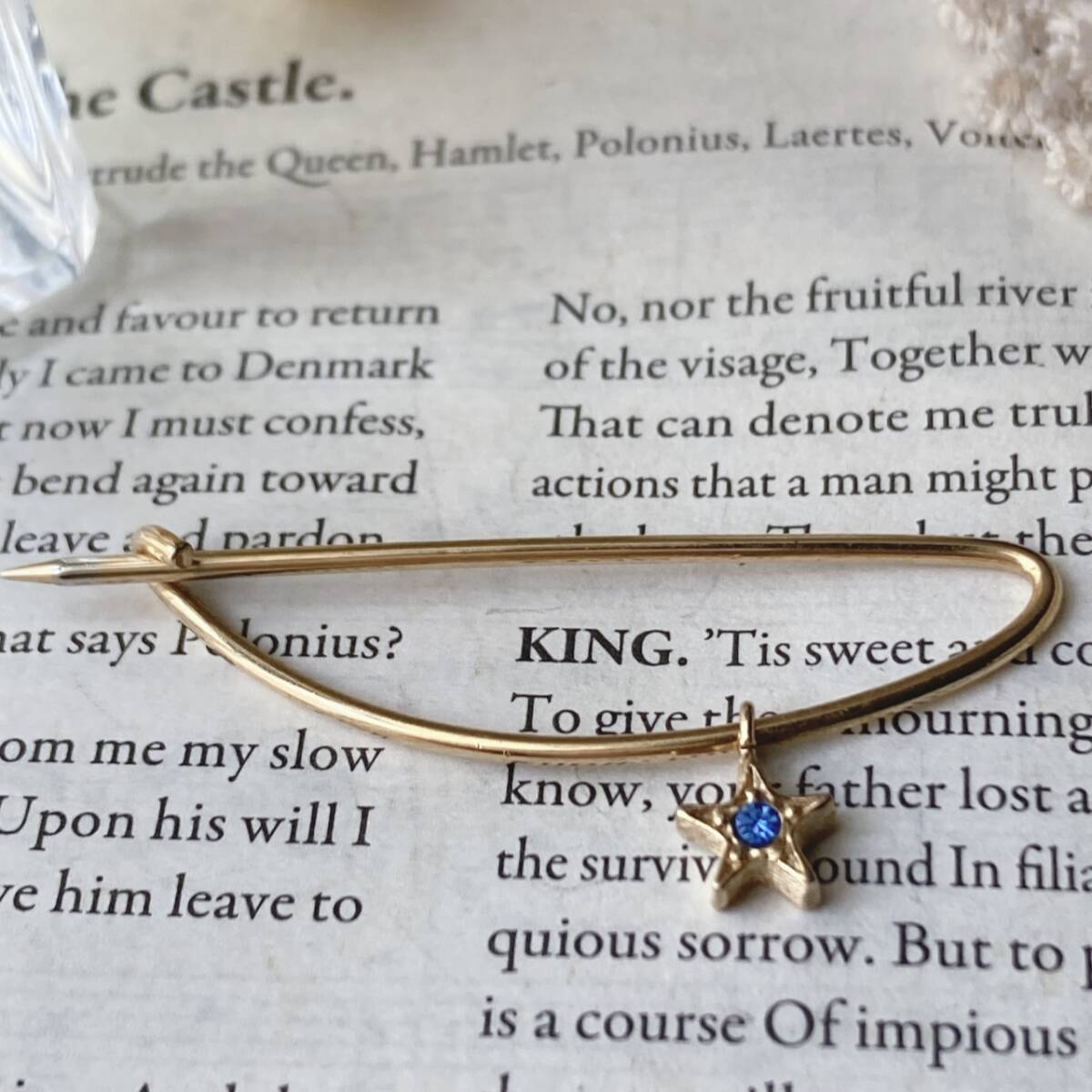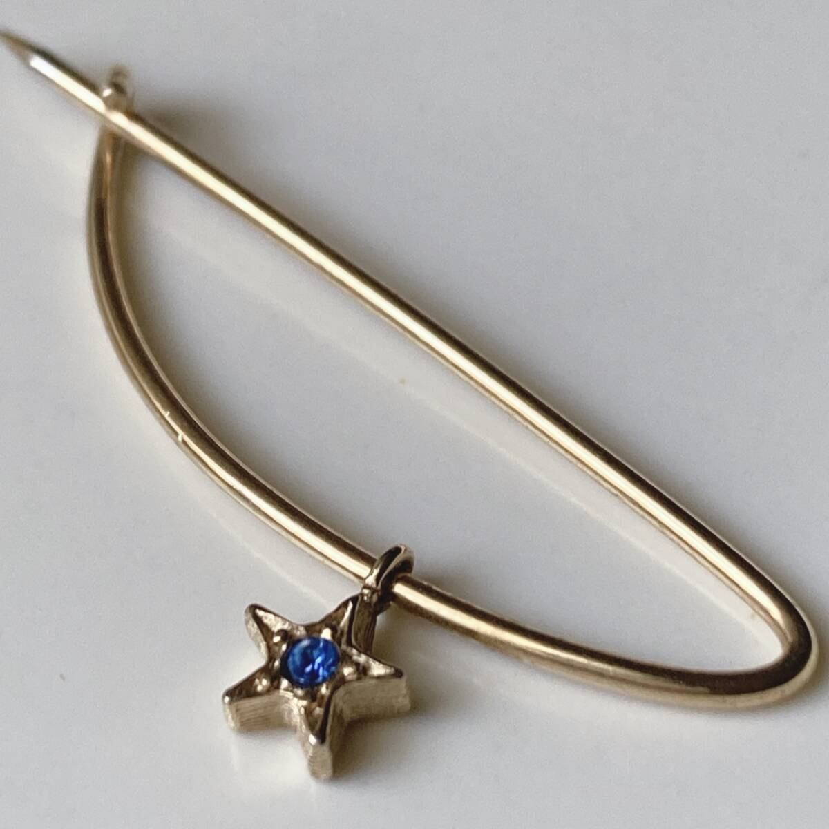 ヴィンテージブローチ 安全ピン スター ブルー ガラス ゆらゆら 星 ゴールドトーン☆vintage jewelry accessoriesR0766