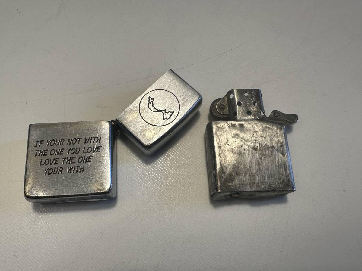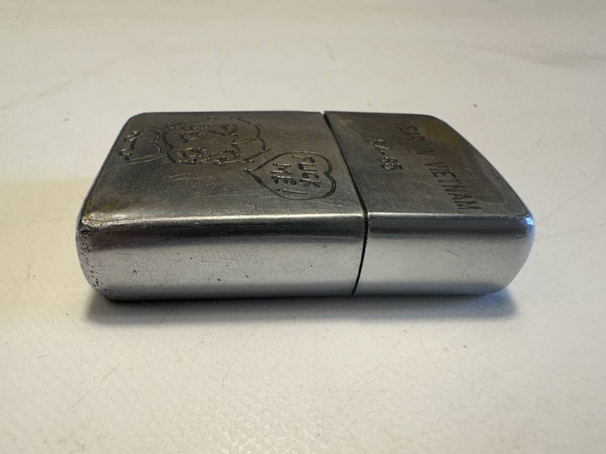 ・以下表面記載あります。 I VEAR VIETNAM 64-65 FUCK ME! MADE IN USA ・状態 中古品 使い込んでます。 スレ/キズ等あります。 底に盛り上がり少しあります。 火花出ます・・・着火のテストしてありません。 ボディ全体に劣化・・・写真で判断して下さい。 写真で状態を確認してください。 経年保管品ですので見逃し等有るかもしれませんので、ご理解していただける方にて、お願いいたします。神経質な方は、すみませんが、ご遠慮ください。 現状販売、ノークレーム・ノーリターンでお願い致します。 |