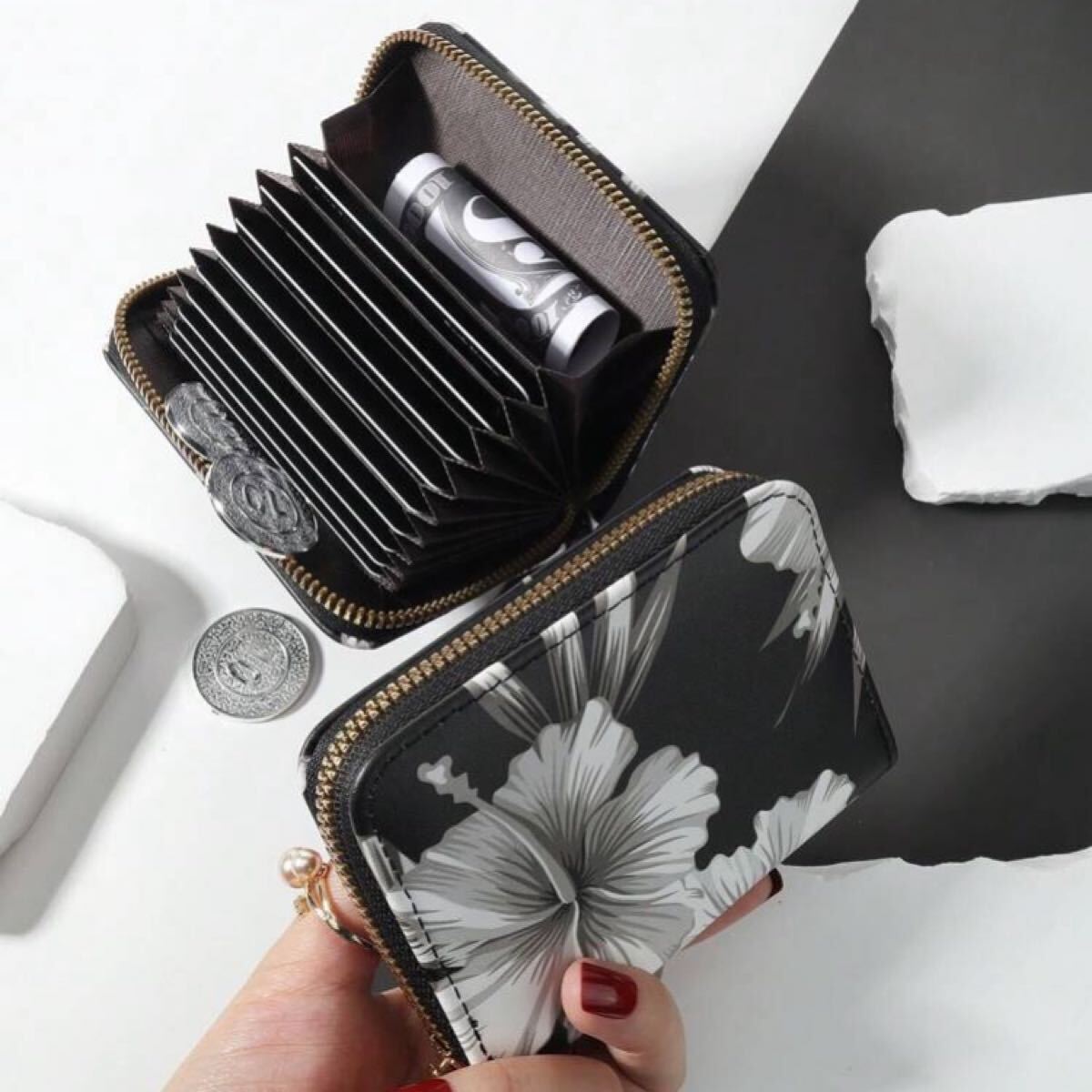 扇のように中が開いて見えるので探しているカードもすぐ見つかります♪