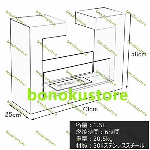 アルコール暖炉は完璧なモダンな装飾要素であり、本物の炎を楽しみながら、部屋に熱を供給することができます。アルコール暖炉はヒーターやキャンドルホルダーとして使用でき、暗闇を照らして暖かい雰囲気を作り出すのに理想的です。 リラックスした夜の雰囲気を作り、魅力と美しさを加えるのに非常に適しています。 休日、感謝祭、クリスマス、父の日、母の日、誕生日、またはいつでも適しています。技術説明:物理的な真空めっき技術 PVD で(Physical Vacuum Deposition)、暖炉に不純物のない強固な皮膜を形成する。 高温や腐食への耐性を高める。 薄い層が暖炉パネルの硬度と堅牢性を高め、より美しい色を実現する。仕様:製品名:暖炉色:白、黒材料組成:304ステンレス鋼燃焼タンク、強化ガラス保護、炭素鋼ベース寸法:73cm X 25cm X 58cm燃料:エタノール容量:1.5 L燃焼時間:6~7時間重量:20.5 kg含む:1x バイオエタノール暖炉1x ライター1x ロート1x 金属製消火器1x 説明書