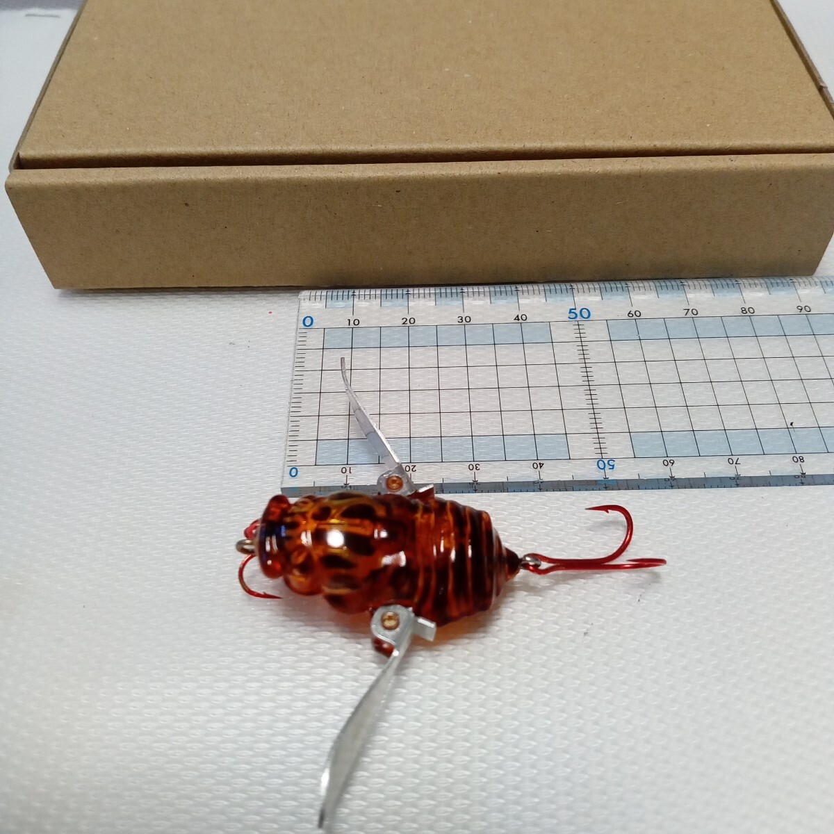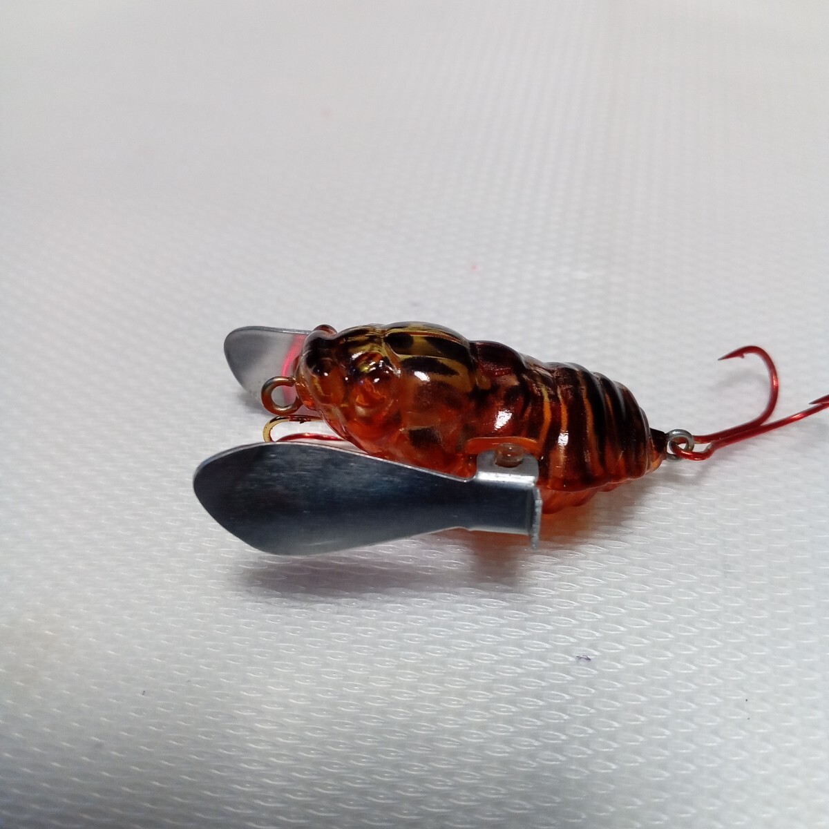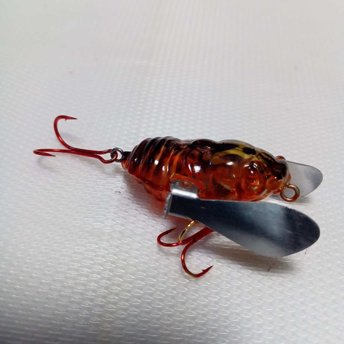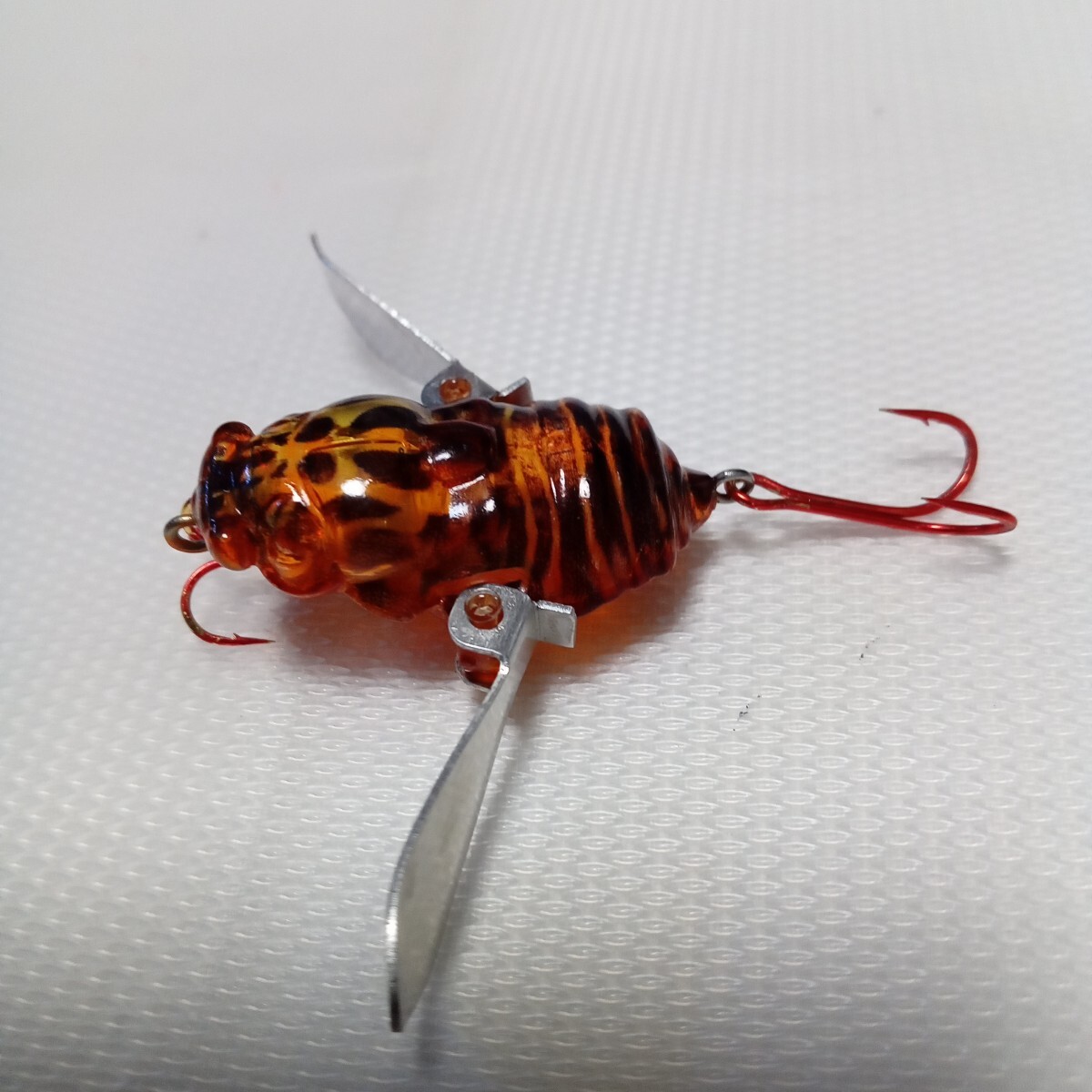 使い方はキャストしてしばらく放置、 一点シェイク後にゆっくり巻くだけ、いかにも蝉がもがいている かのように。巻いている時のカナカナの羽部分の水しぶきが かなりいけてます。