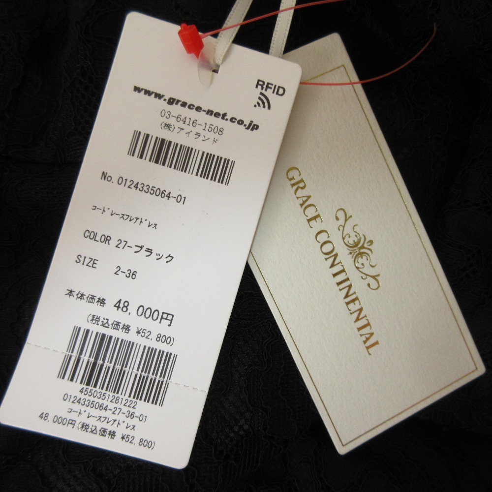 商品名:24AW GRACE CONTINENTAL グレースコンチネンタル スカラップ コードレースフレアドレス ワンピース 0124335064 36 ブラック