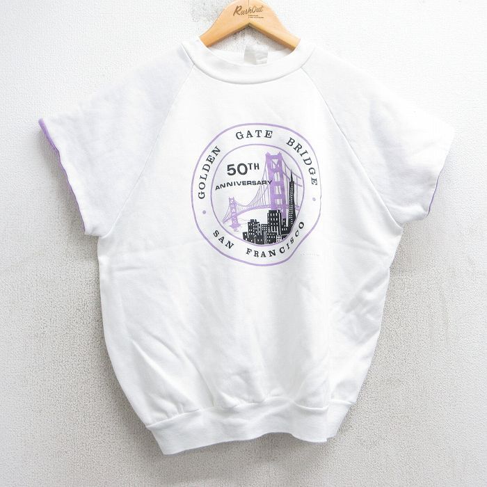 【商品名】 L★古着 半袖 スウェット メンズ 80年代 80s ゴールデンゲートブリッジ サンフランシスコ ラグラン クルーネック 白