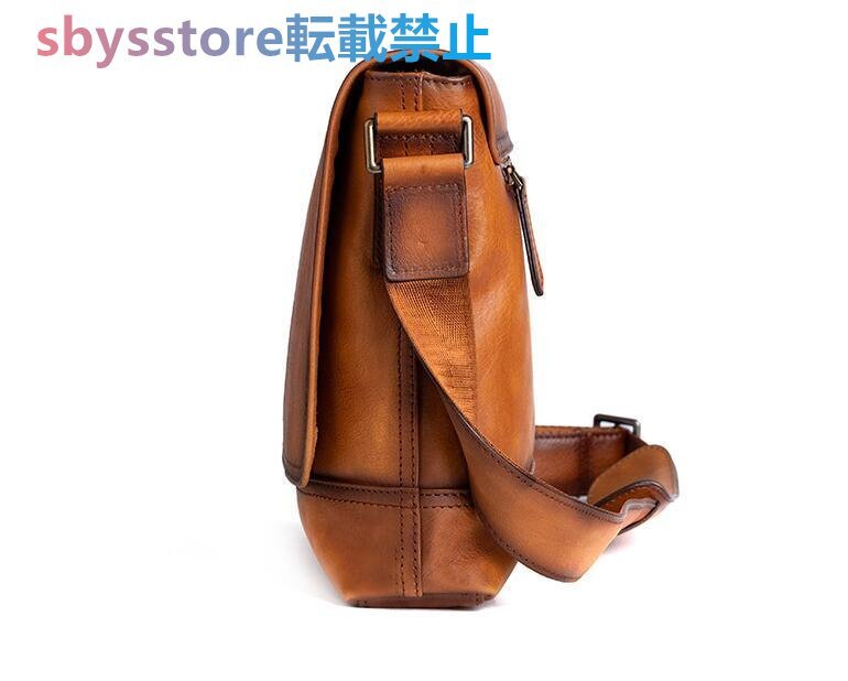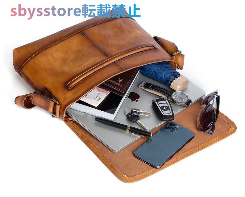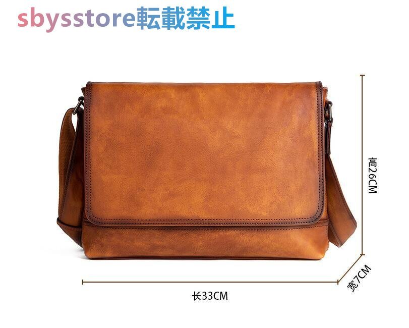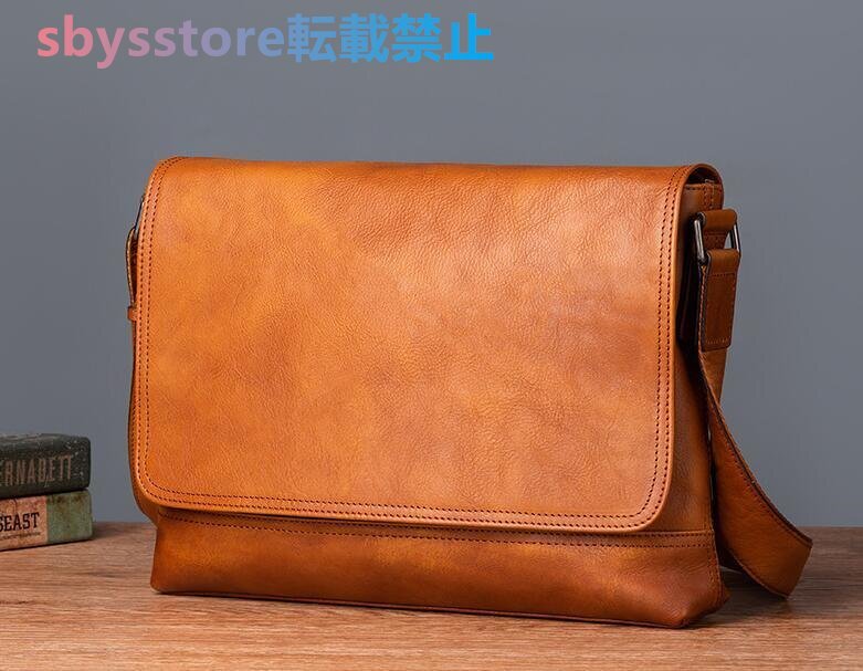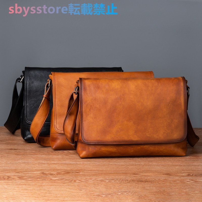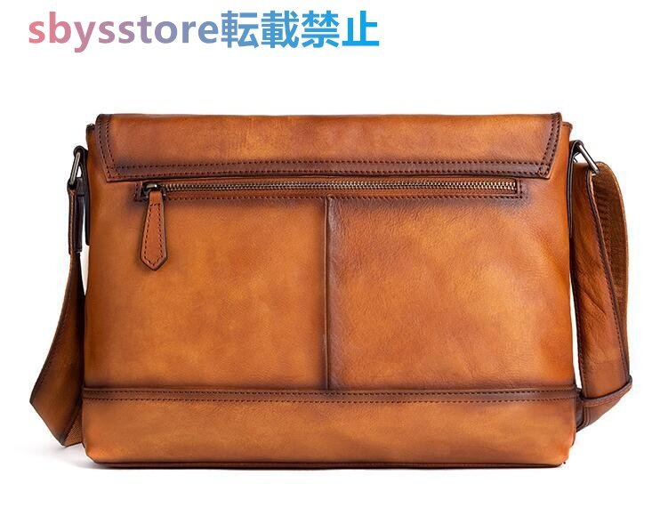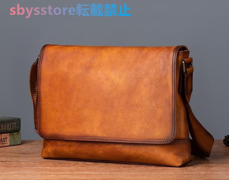 職人手作りヌメ革 メンズショルダーバッ グ メッセンジャーバック 斜めがけ 肩掛け レザー ビジネスバッグ おしゃれ 大容量