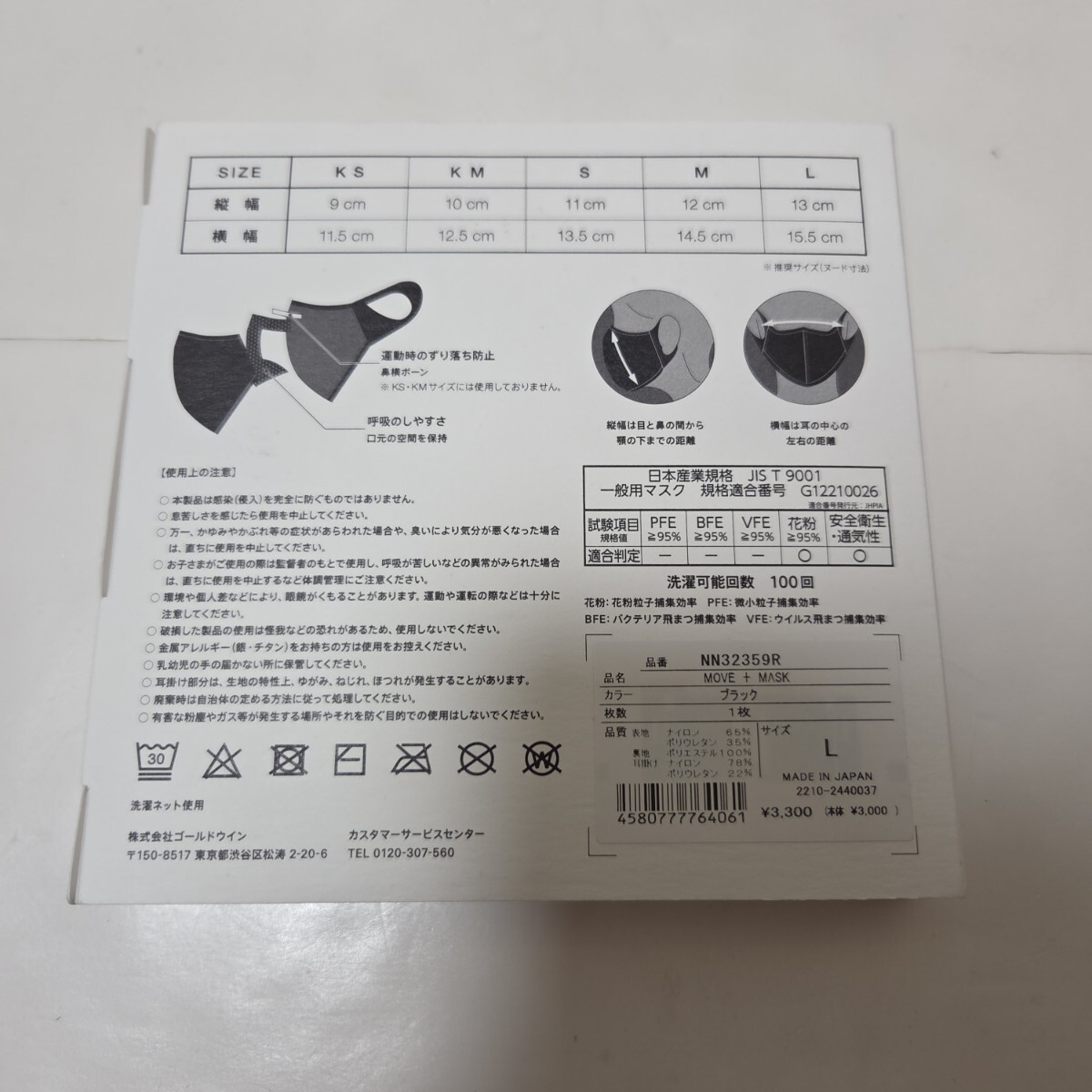 JISの「一般用マスク」規格(JIS T9001)に適合するよう設計しており、花粉に対する捕集機能と通気性、安全・衛生項目の規定基準をクリアしています。さらに、100回洗濯後もその規格基準を満たす耐久性を持ち合わせます。