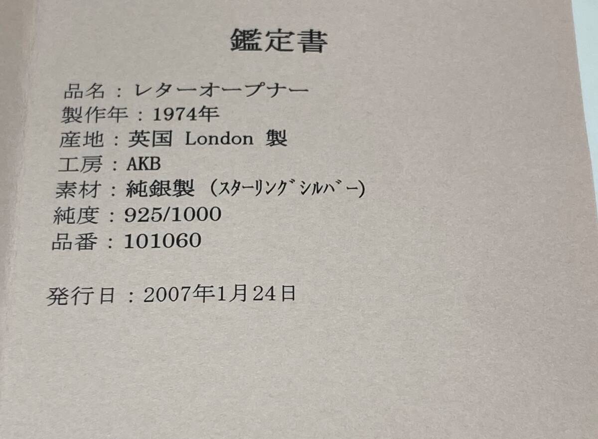35438☆純銀製 925/1000 ロンドン製レターオープナー 1974年制作 ヴィンテージ |