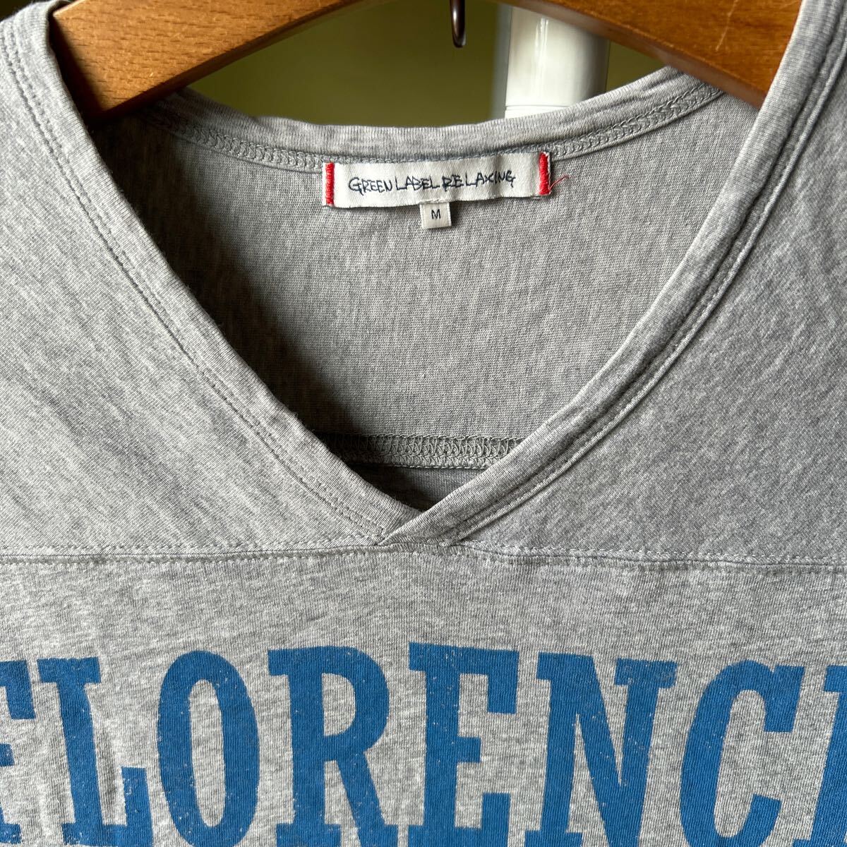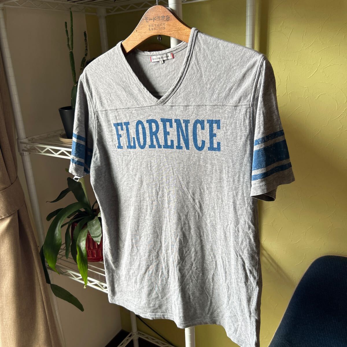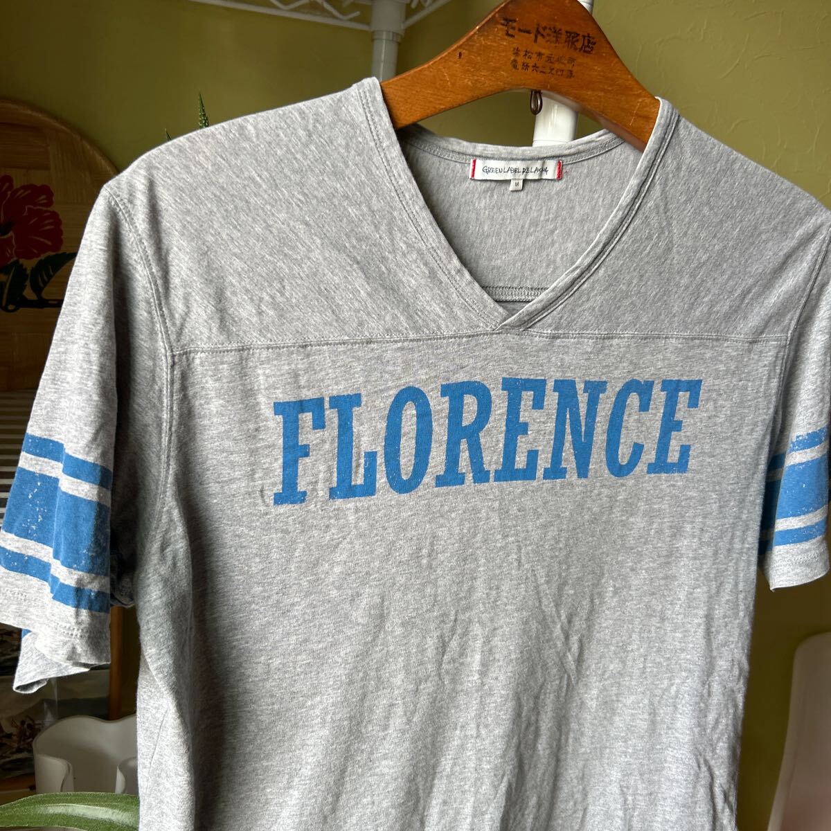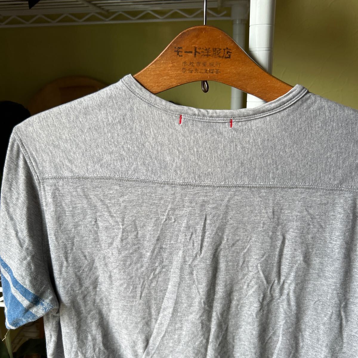 多少の誤差はお許しください。良い雰囲気です。綿100Vネック カレッジTシャツ風 できる限りダメージは説明させていただきますが、こちらが気づかない程度のわずかなしみ、よごれ、
