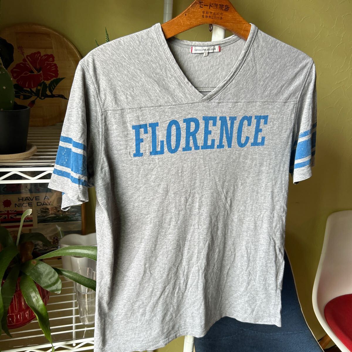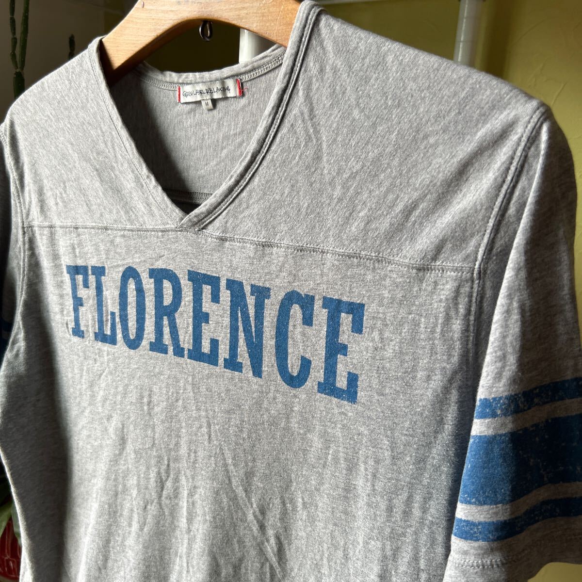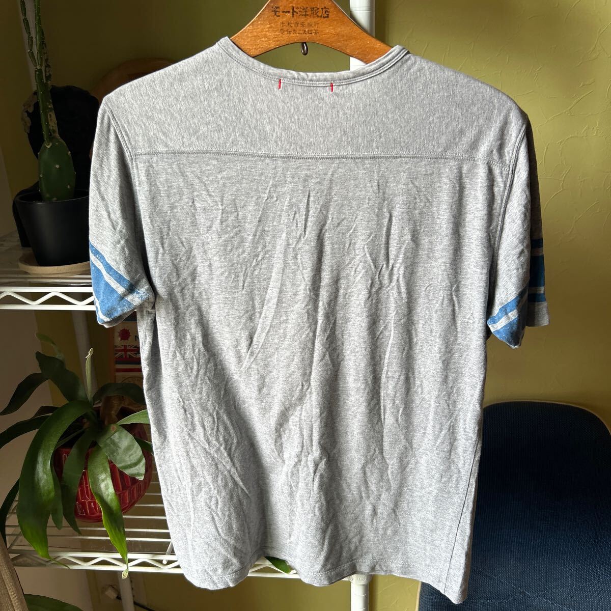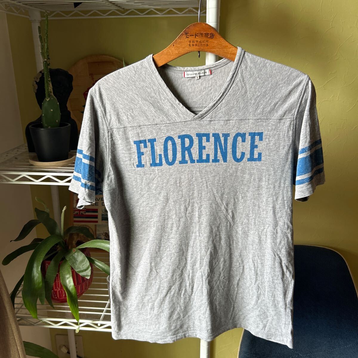 多少の誤差はお許しください。良い雰囲気です。綿100Vネック カレッジTシャツ風 できる限りダメージは説明させていただきますが、こちらが気づかない程度のわずかなしみ、よごれ、