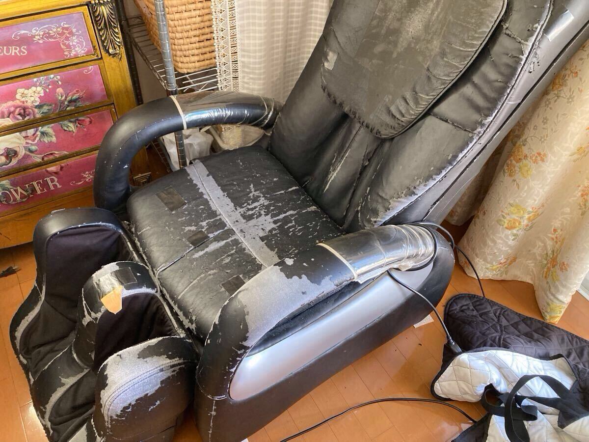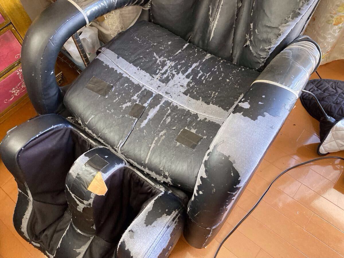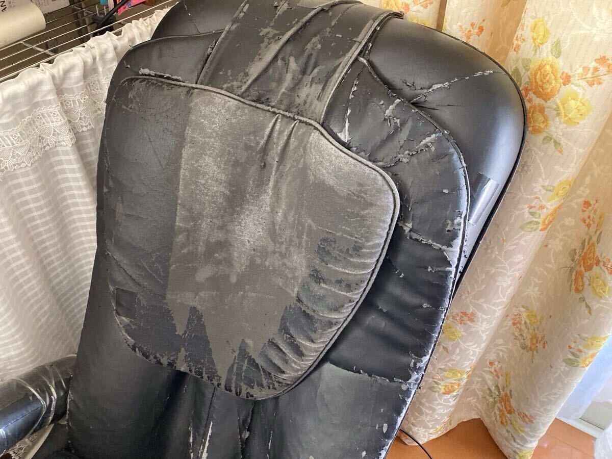 訳ありの理由は写真のように合皮がボロボロになってしまっています。
