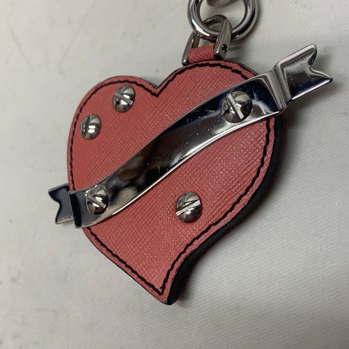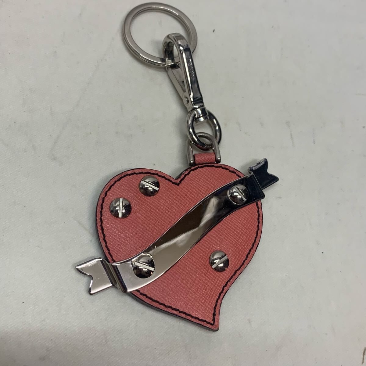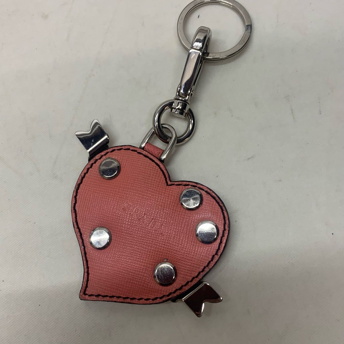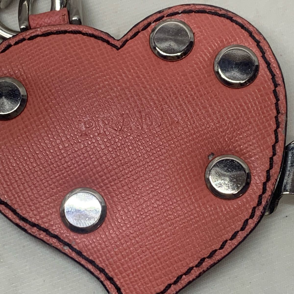 【美品】 PRADA プラダ ハート レザー チャーム キーリング キーホルダー ピンク
