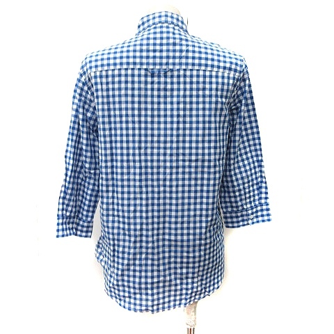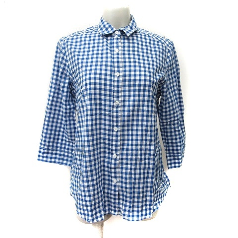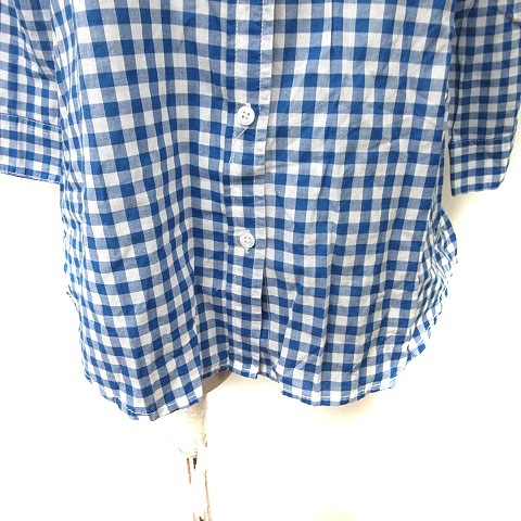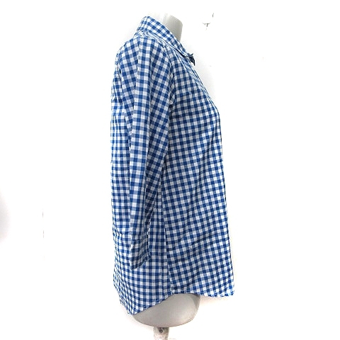スタディオクリップ Studio Clip シャツ ブラウス ギンガムチェック 七分袖 L 青 ブルー /YI レディース