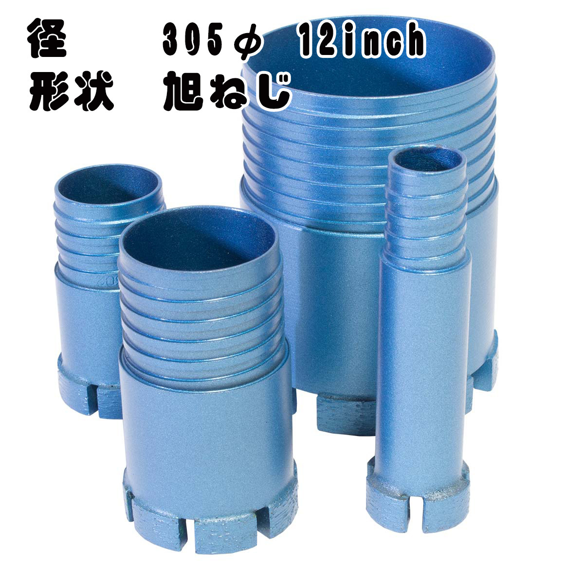 ダイヤモンドコアビット 三点式刃先 【二次製品、硬質、多配筋コンクリート用】12インチ 305φ 旭ねじ