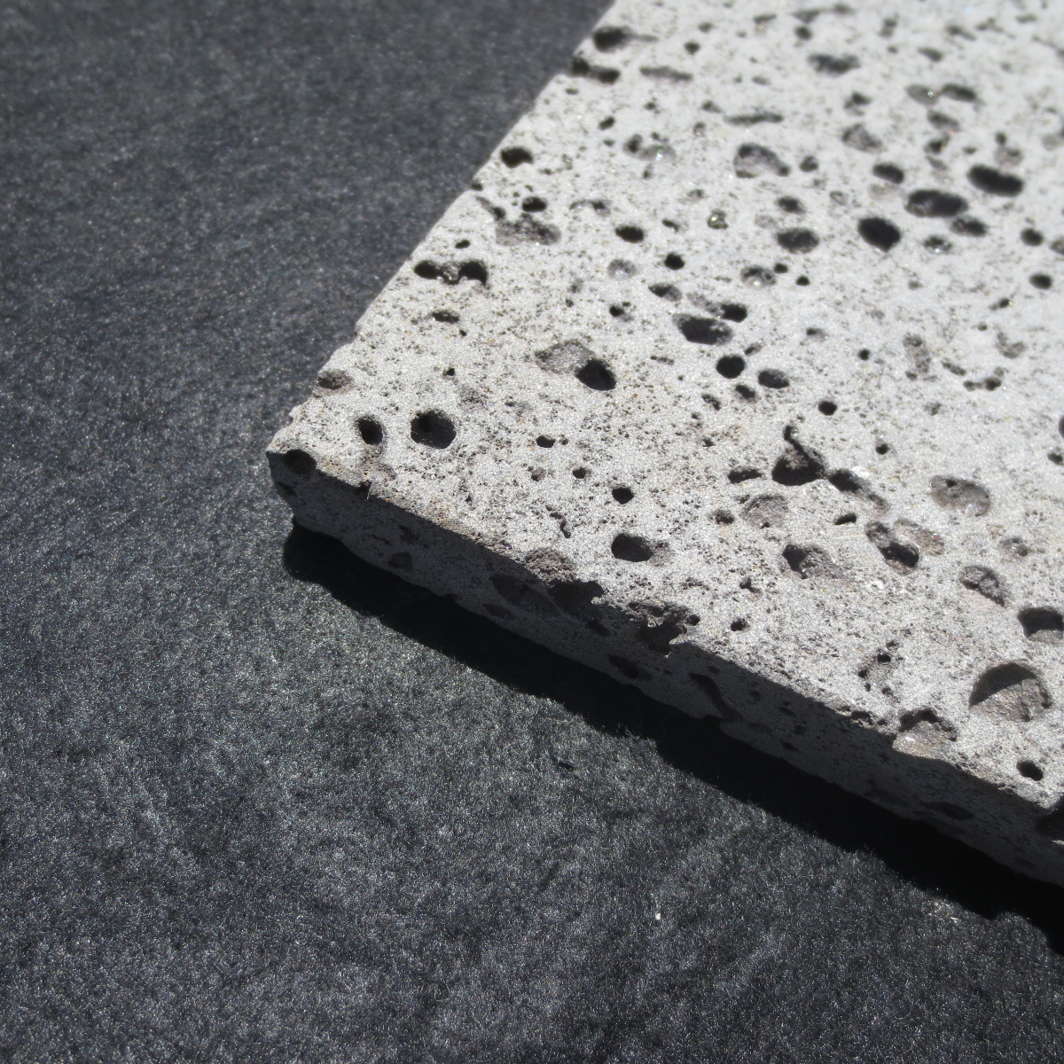 ○天然由来の性質のため気孔の大きさや数 石目などは同じではありません。白い部分は堆積物などの溶岩物質です。