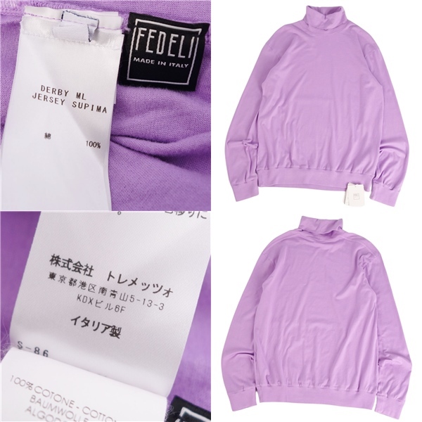 未使用 フェデリ FEDELI Tシャツ カットソー ハイネック ロングスリーブ 長袖 コットン トップス メンズ XS パープル |