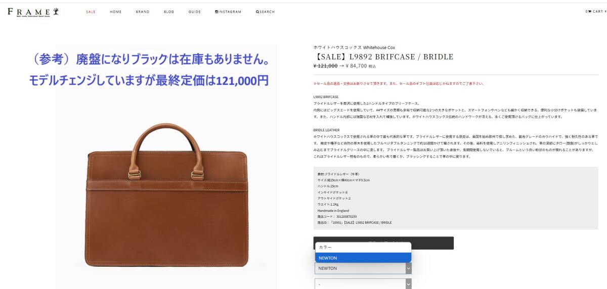 「貴重な旧モデル!人気のブラック!【Whitehouse Cox】ホワイトハウスコックス ブライドルレザー ブリーフケース 黒色」の出品です。