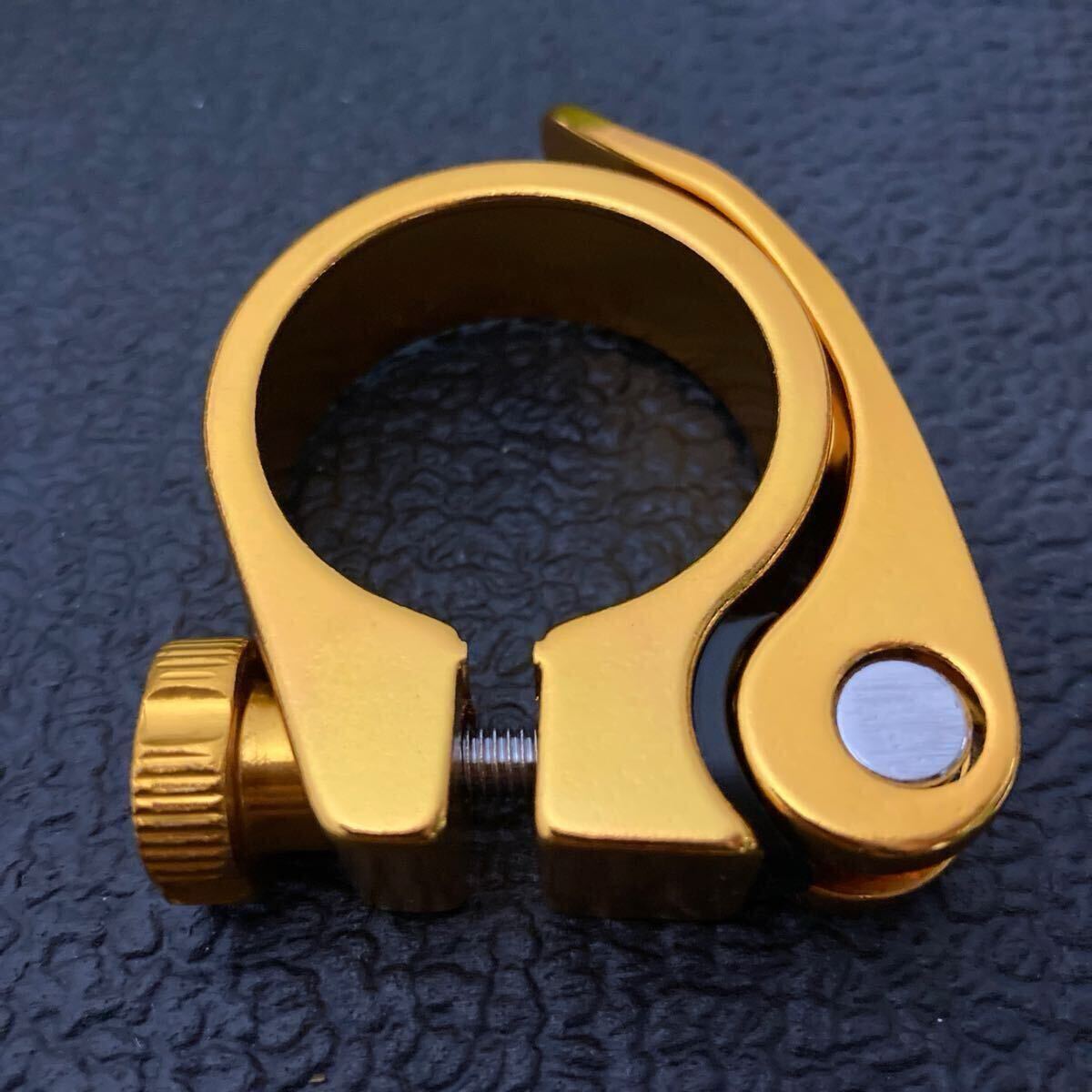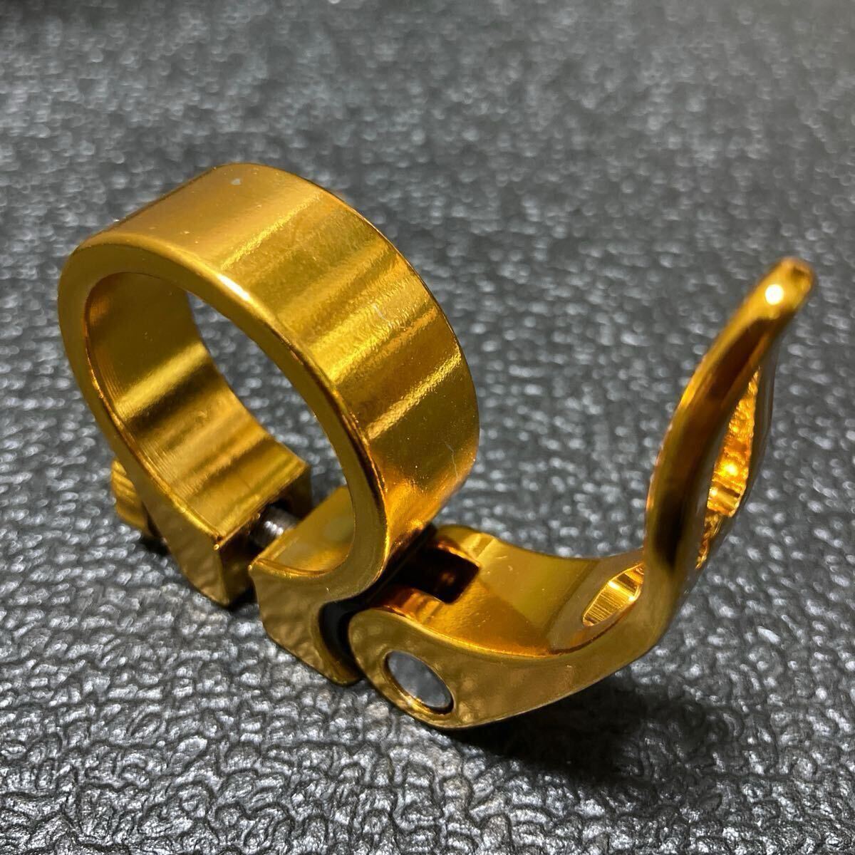 ☆ 即決・新品!! 自転車 軽量 アルミ QRシートクランプ φ34.9mm用 金 ☆
