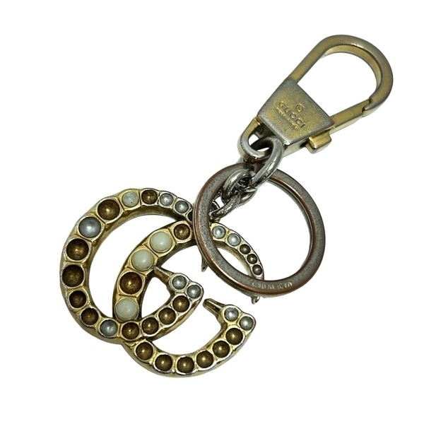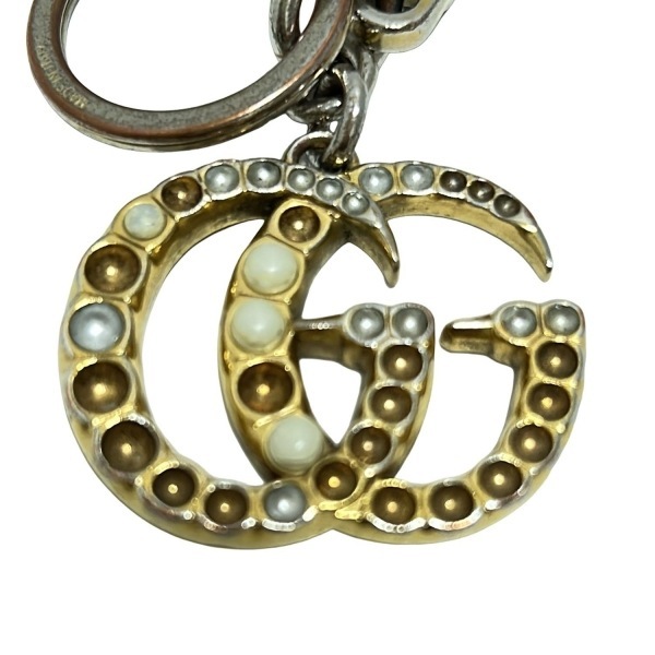 グッチ GUCCI キーホルダー(チャーム) - ゴールド×アイボリー フェイクパール/GGマーモント キーホルダー