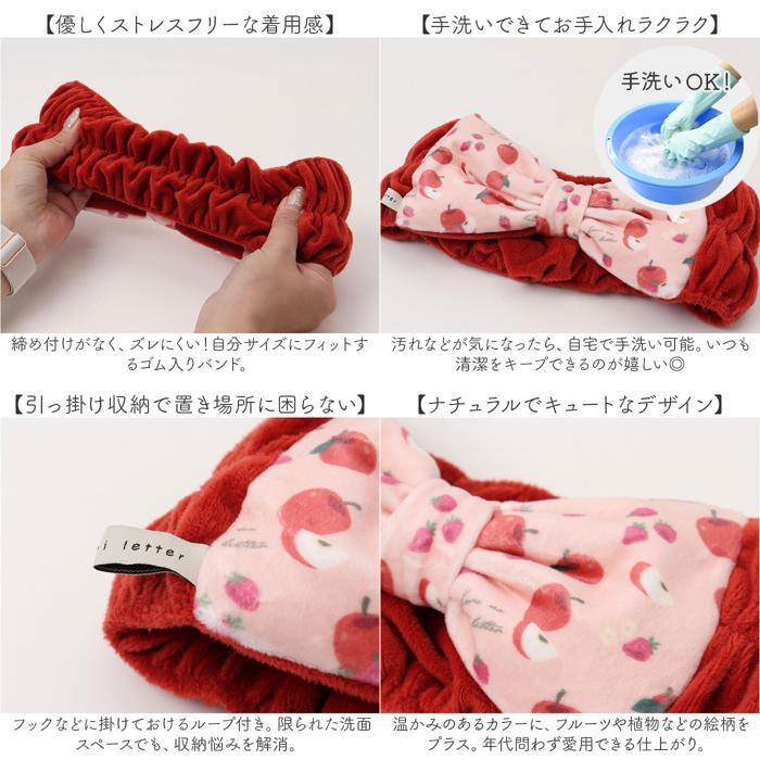 商品説明 | ・・【洗顔やスキンケアなどの必需品】 ・髪をサッと上げて、洗顔やフェイスケア♪手軽に使えて可愛らしい「ヘアバンド」。 ・【思わず触れたくなるような肌触り】 ・ふんわり柔らかな質感に、程よいボリューム。お顔まわりに触れてもチクチク感ゼロ。 ・【優しくストレスフリーな着用感】 ・締め付けがなく、ズレにくい!自分サイズにフィットするゴム入りバンド。 ・【手洗いできてお手入れラクラク】 ・汚れなどが気になったら、自宅で手洗い可能。いつも清潔をキープできるのが嬉しい◎ ・【引っ掛け収納で置き場所に困らない】 ・フックなどに掛けておけるループ付き。限られた洗面スペースでも、収納悩みを解消。 ・【ナチュラルでキュートなデザイン】 ・温かみのあるカラーに、フルーツや植物などの絵柄をプラス。年代問わず愛用できる仕上がり。 ・【雑貨で想いを届けるハレの日レター】 ・お世話になっている人や自分へのご褒美に。選んで楽しい、ギフトアイテムを提供♪ |