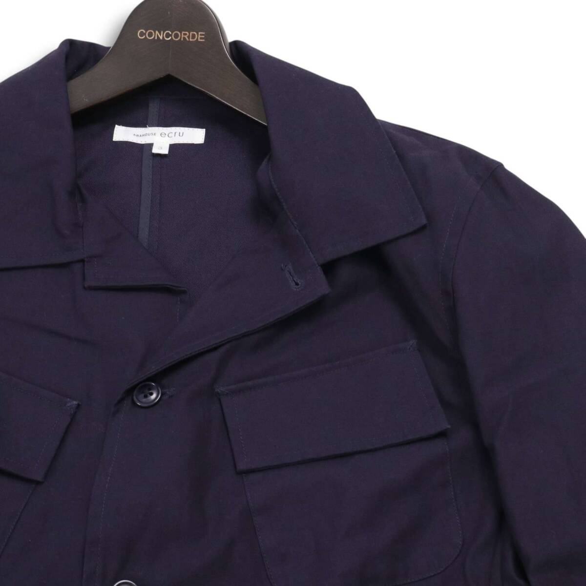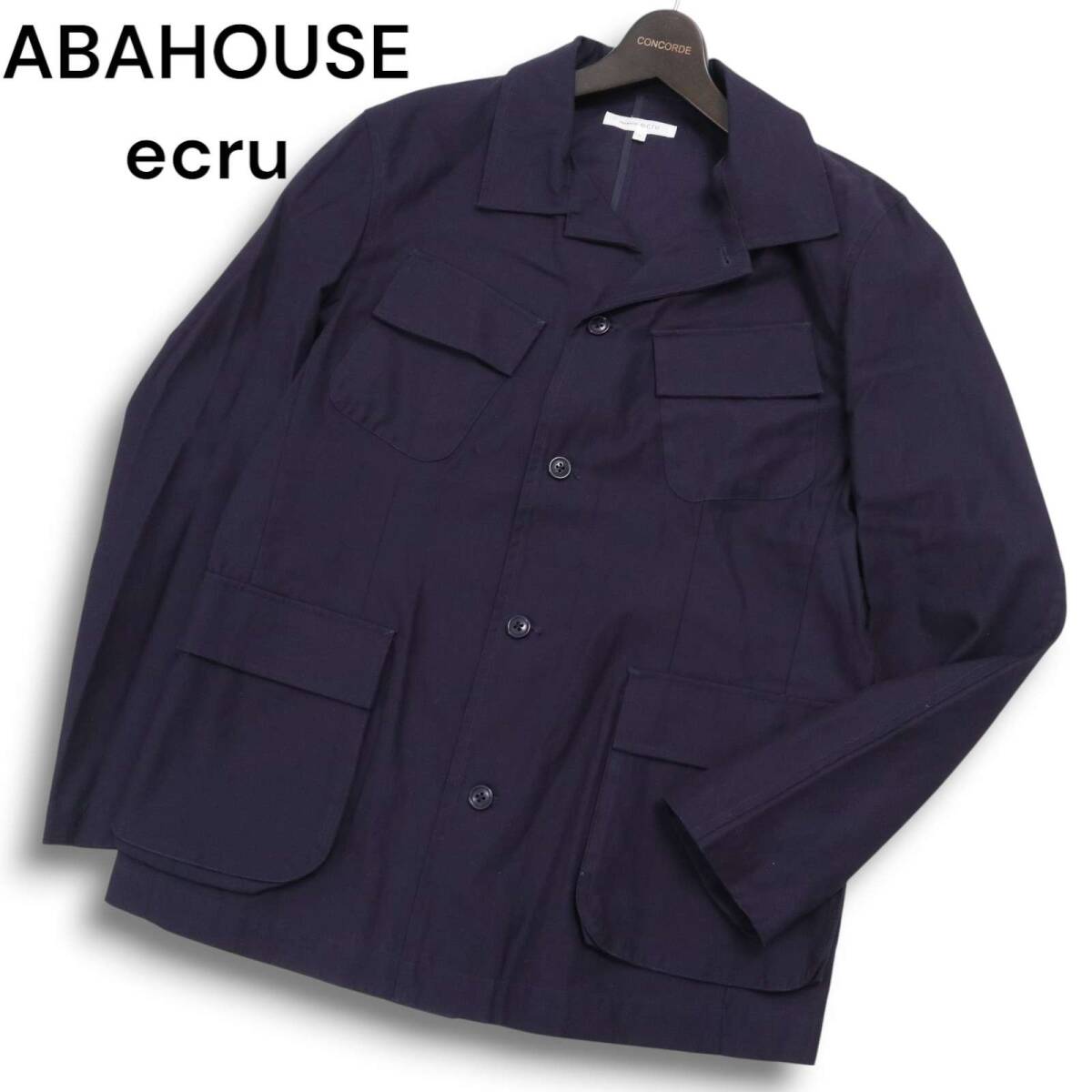 ABAHOUSE ecru アバハウス エクリュ 通年★ コットン サファリ ジャケット Sz.3 メンズ 紺 ネイビー