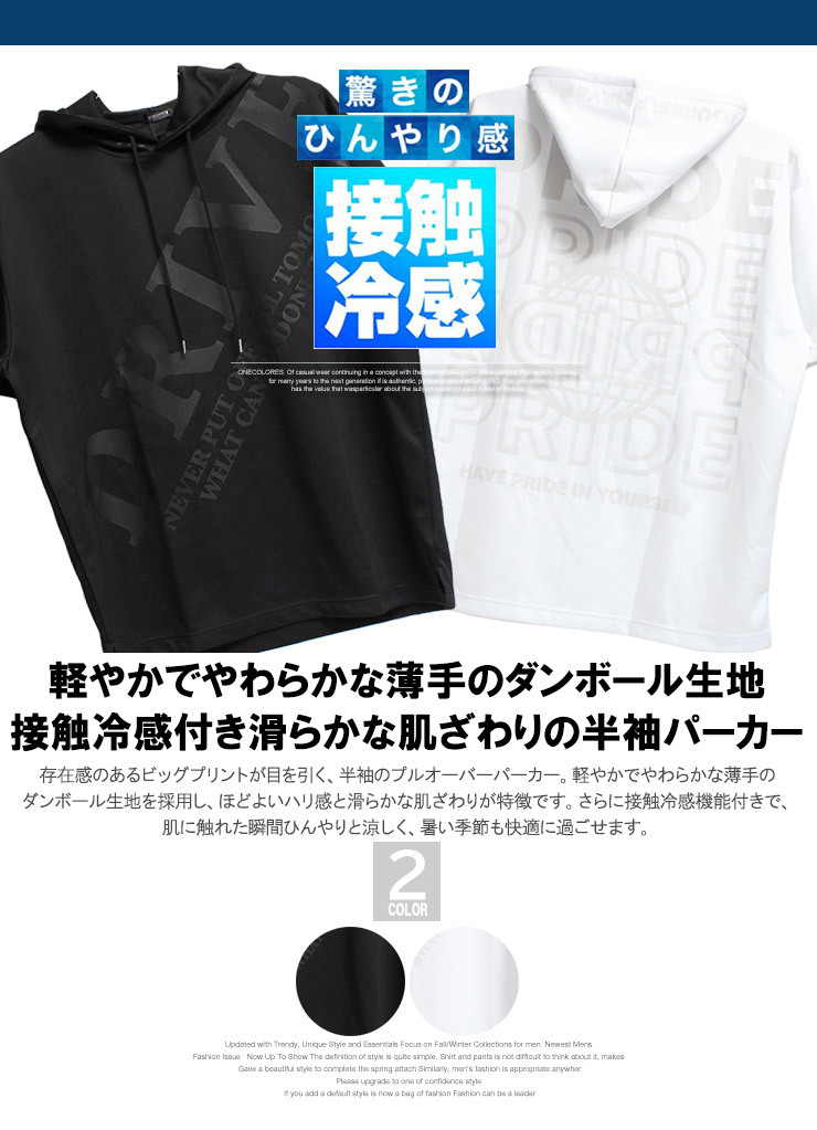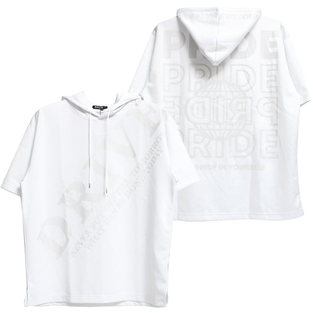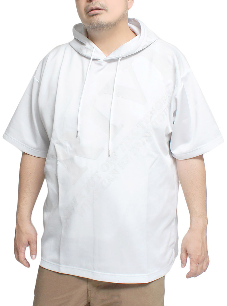 商品名 | 【新品】 5L ホワイト 半袖 パーカー メンズ 大きいサイズ 接触冷感 ダンボール ビッグ プリント プルオーバー フード カットソー |