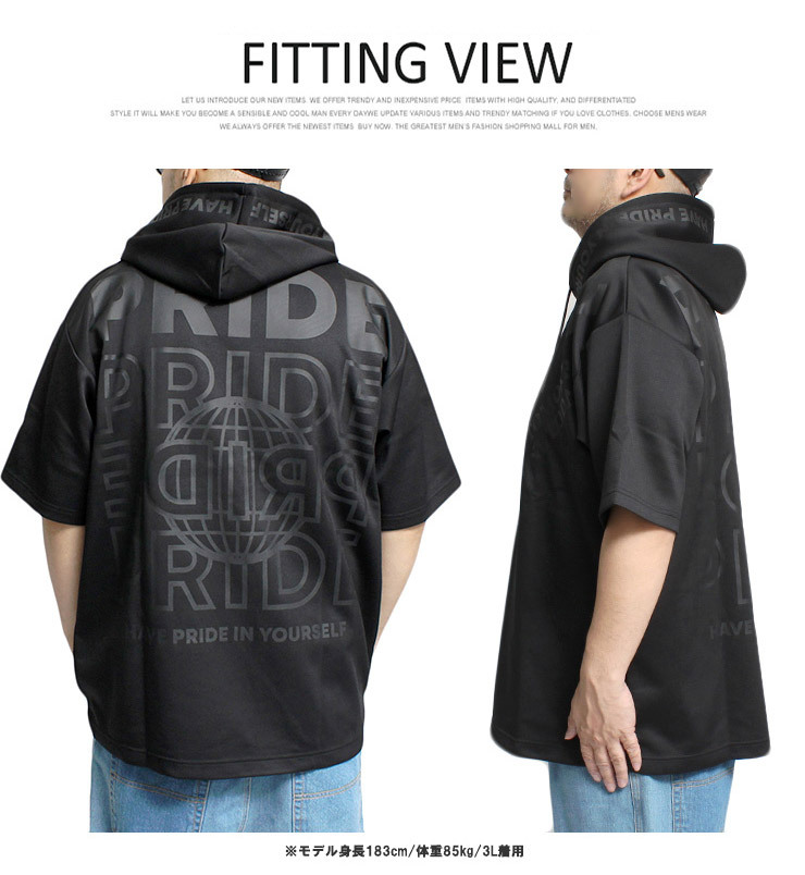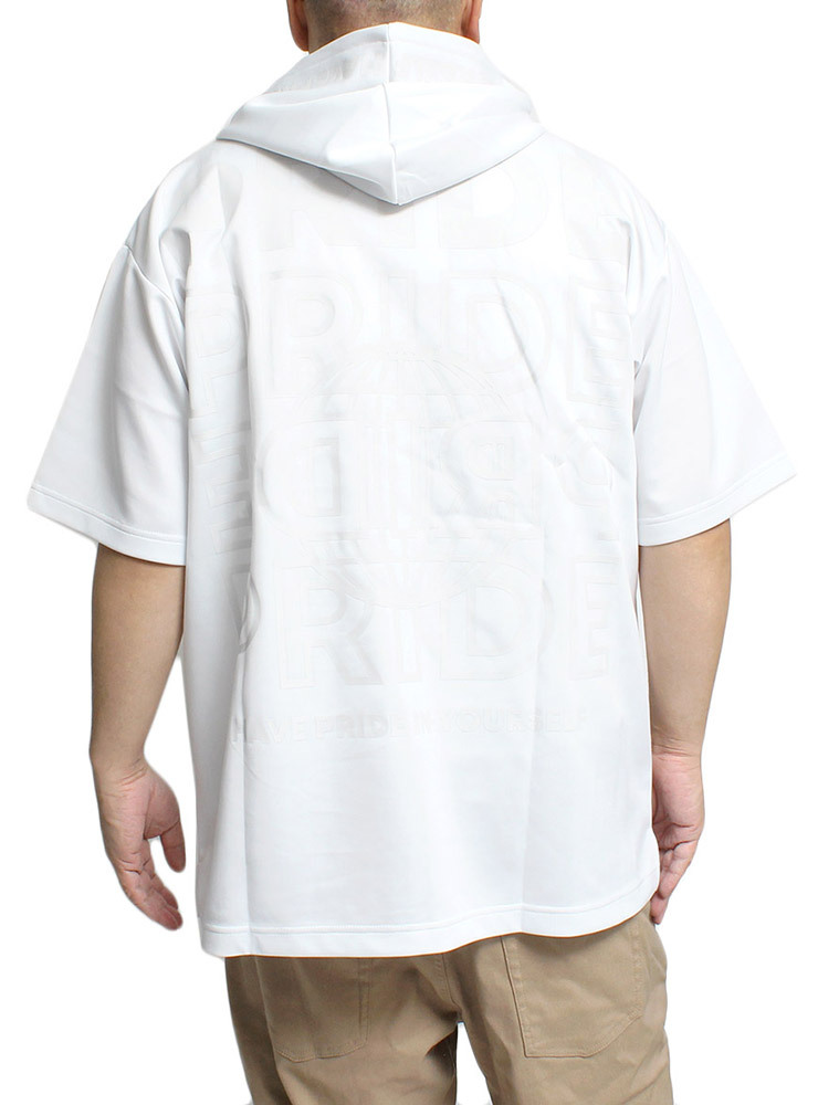 商品説明 | 存在感のあるビッグプリントが目を引く、半袖のプルオーバーパーカー。 |