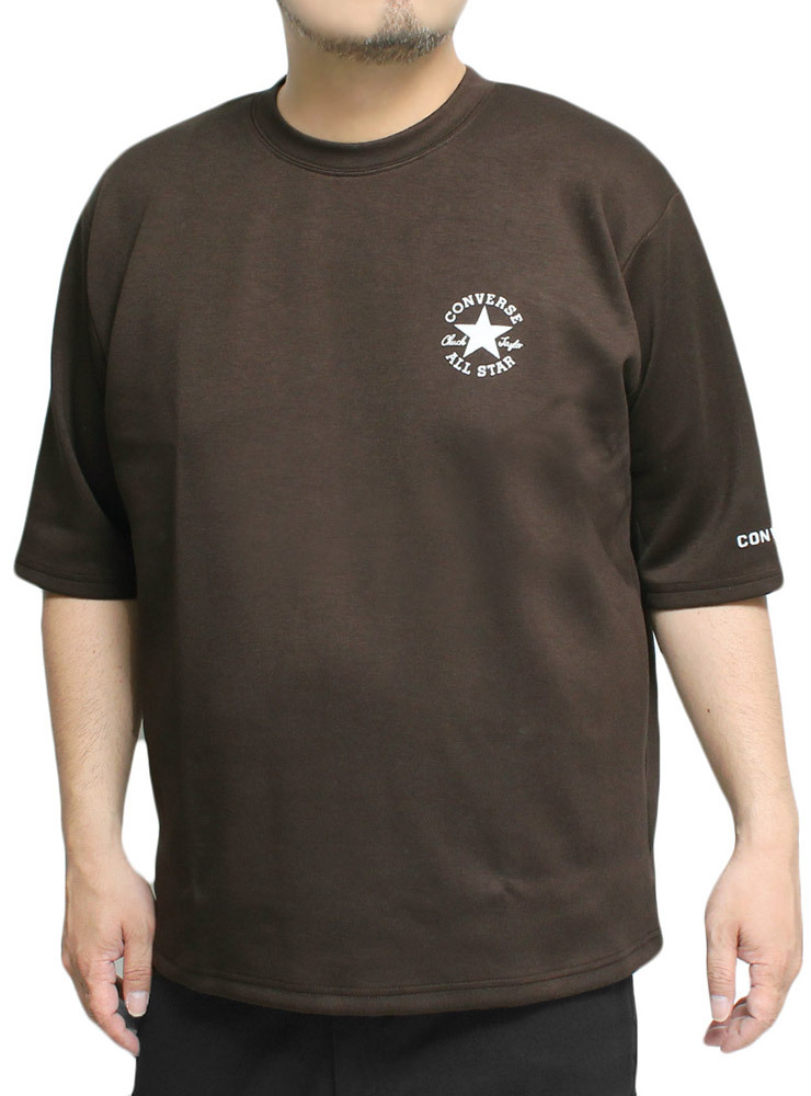 商品名 | 【新品】 4L ブラウン コンバース(CONVERSE) 5分袖 Tシャツ メンズ 大きいサイズ 接触冷感 ロゴ プリント クルーネック カットソー |