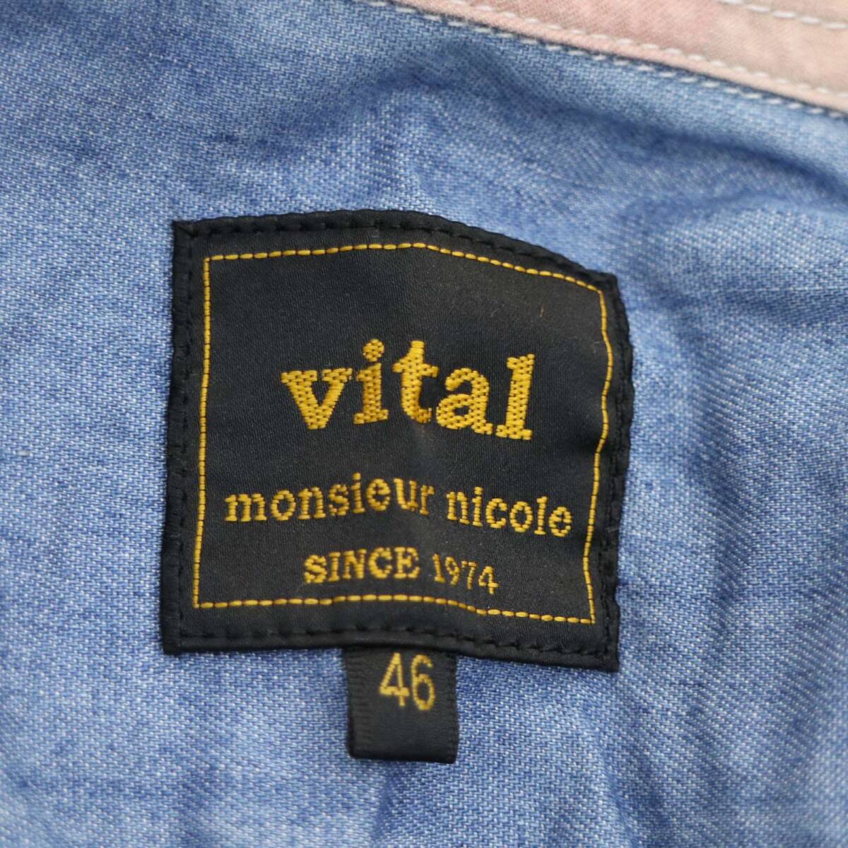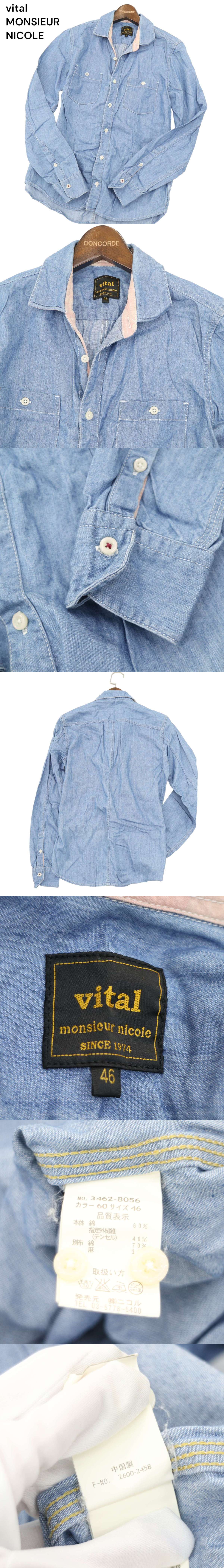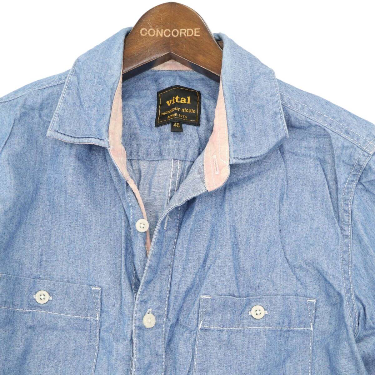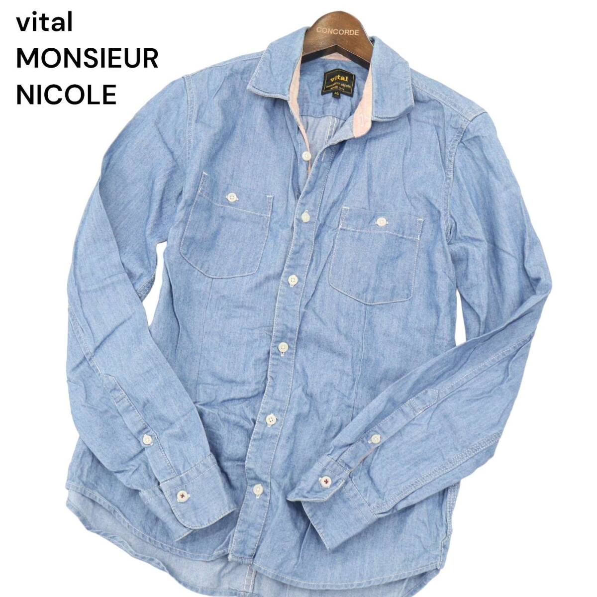 vital MONSIEUR NICOLE ムッシュ ニコル 通年 テンセル混★ 長袖 シャンブレー ワーク シャツ Sz.46 メンズ