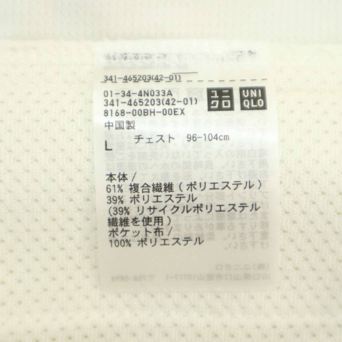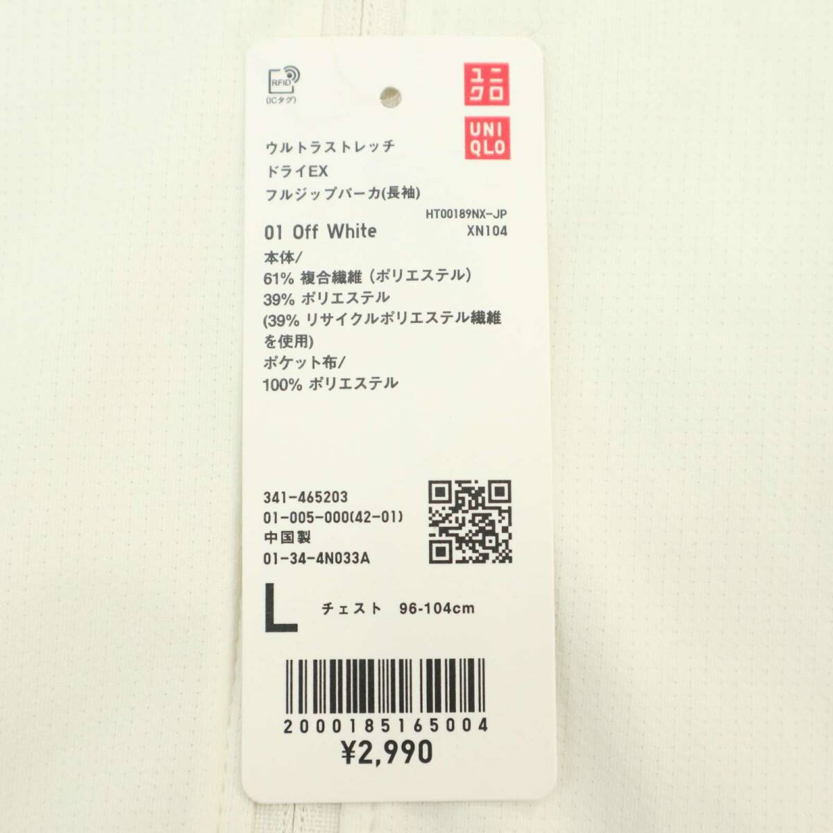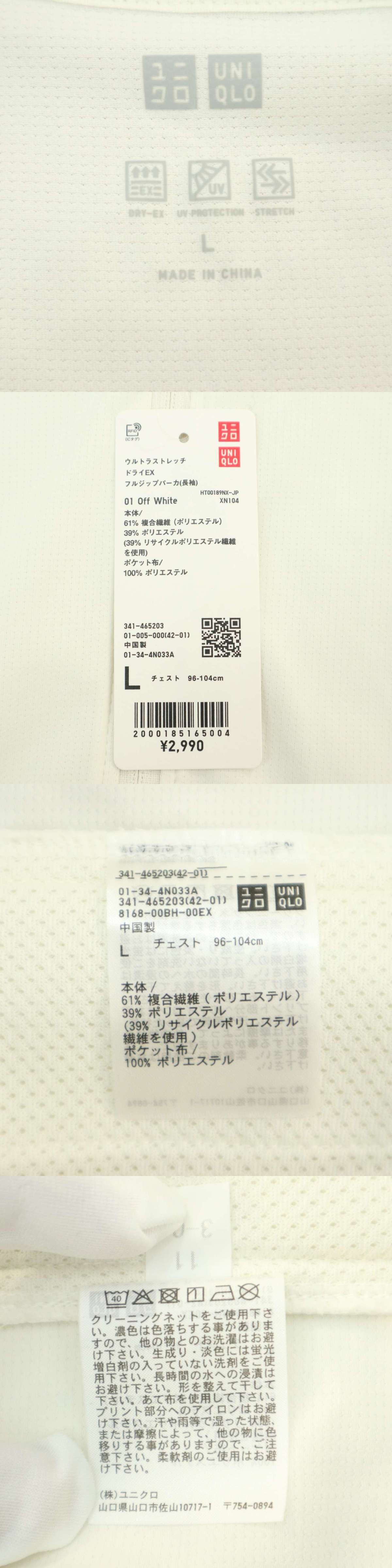 【新品 未使用】 UNIQLO ユニクロ 通年 ウルトラ ストレッチ ドライEX フルジップ パーカー Sz.L メンズ 白