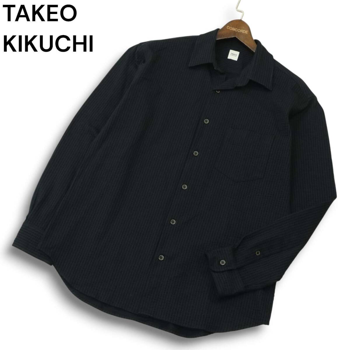 TAKEO KIKUCHI タケオキクチ 通年 シアサッカー★ 長袖 ストライプ シャツ Sz.2 メンズ ネイビー × 黒