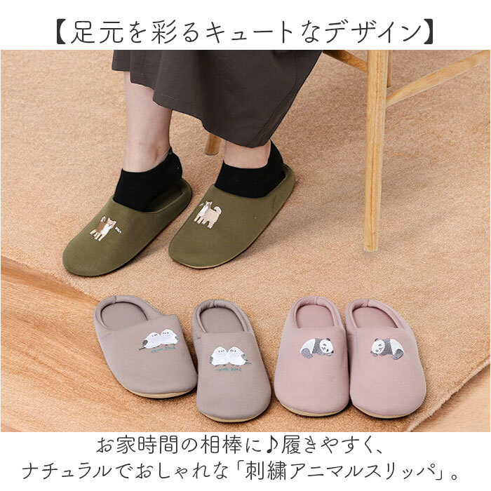商品説明 | ・・【足元を彩るキュートなデザイン】 ・お家時間の相棒に♪履きやすく、ナチュラルでおしゃれな「刺繍アニマルスリッパ」。 ・【心もほっこり◎癒やしをプラス】 ・可愛らしいアニマル刺繍がワンポイント☆柔らかな色合いに仕上げ、優しい印象を演出。 ・【ふんわり優しく、素足でも快適】 ・全体的に柔らか素材&程よい弾力のあるインソール。足にかかる負担を軽減し、履き心地抜群。 ・【軽やかで足さばきがスムーズ】 ・かかと部分が低めに作られており、サッと足入れOK。軽量で、家事等での室内移動もラクチン。 ・【床面の傷つきも防ぐ静音設計】 ・底面はソフトな質感でフローリングやマットを傷つけにくく、歩いた時のパタパタ音も軽減。 ・【来客用や贈り物にもおすすめ】 ・空間に馴染みやすいデザイン。来客用や、アニマル好きな方へのギフトにもぴったり☆ |
