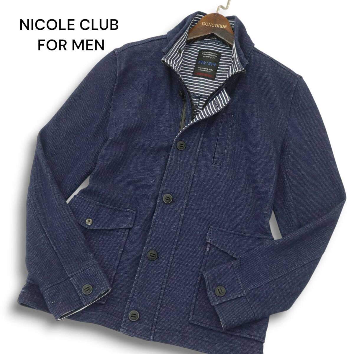 NICOLE CLUB FOR MEN ニコルクラブ フォーメン 裏地ボーダー★ スタンドカラー インディゴ ジャケット Sz.46 メンズ 紺