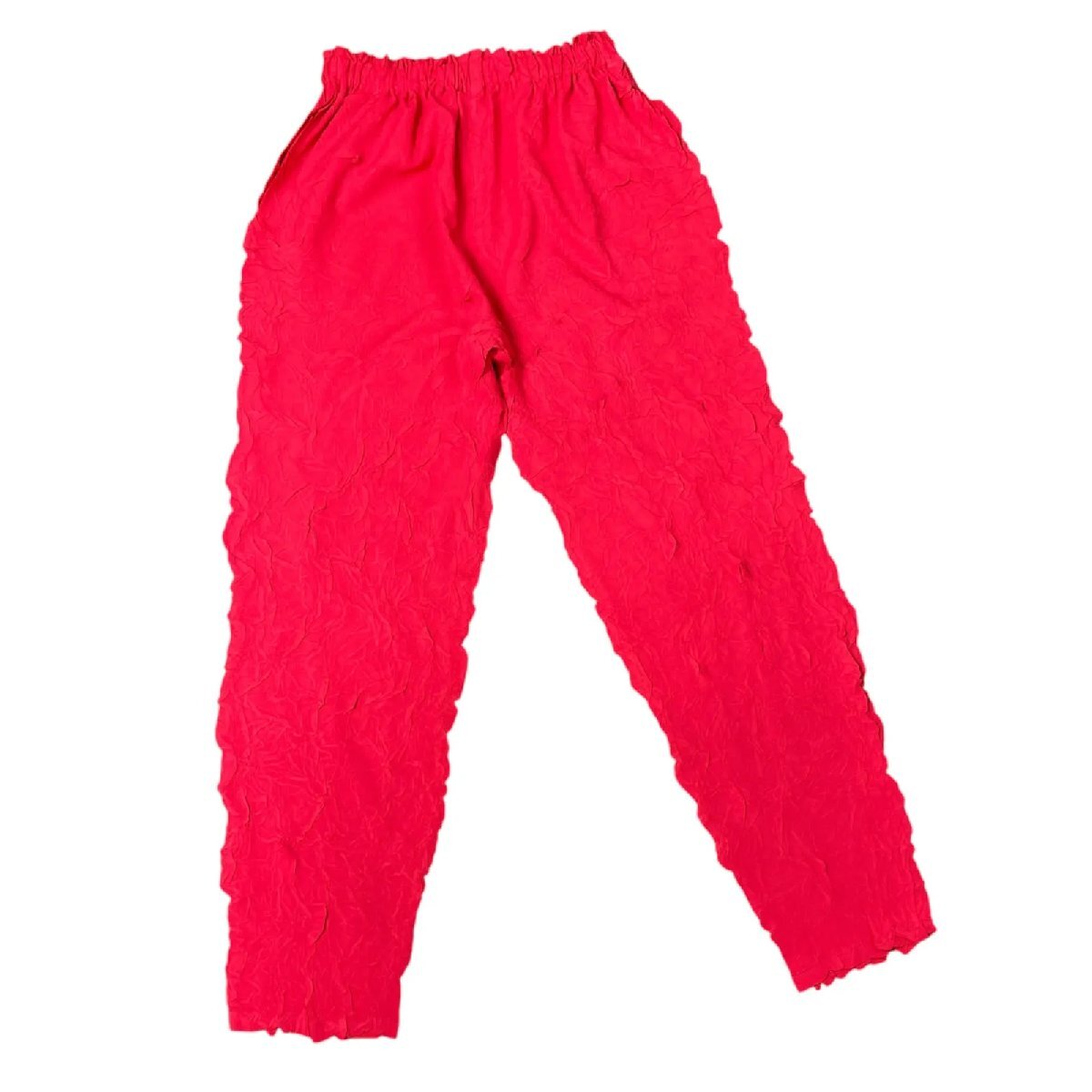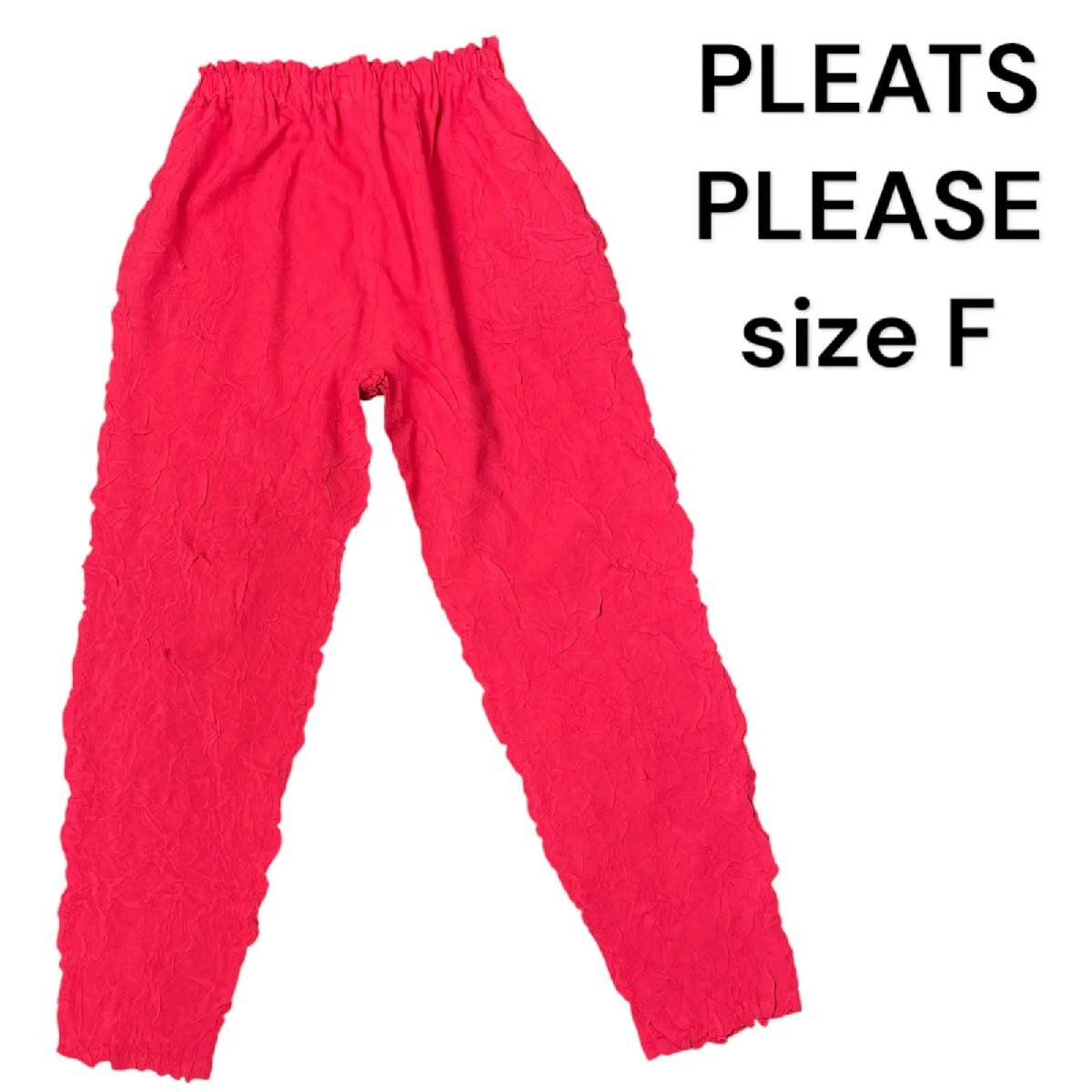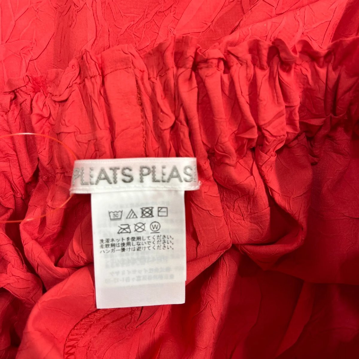 美品 プリーツプリーズ PLEATS PLEASE パンツ ズボン 印象的な赤 シワ加工系 サルエル寄り サイズF レディース 中古 S5N470