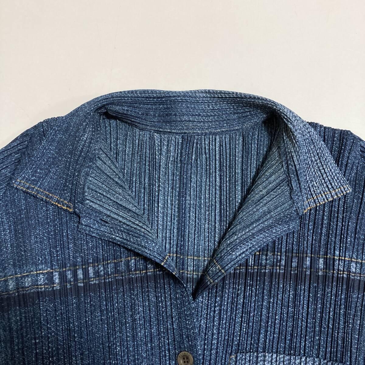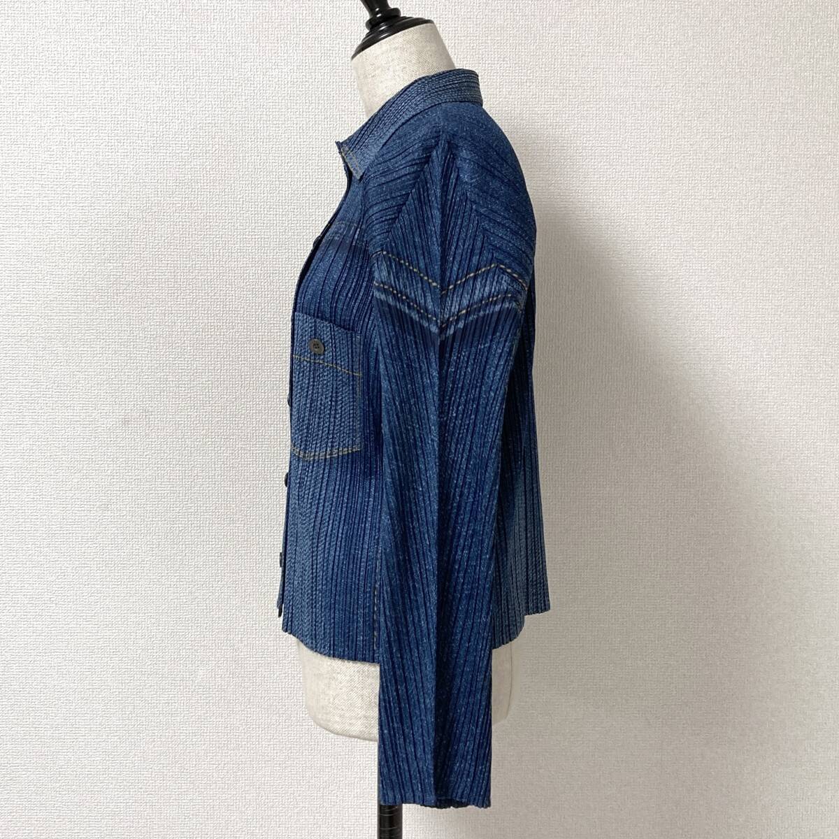 ISSEY MIYAKE PLEATS PLEASE デニム ジャケット 転写 長袖 シャツ