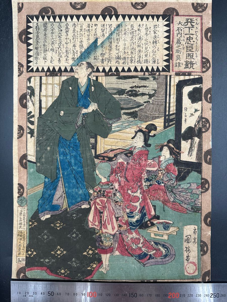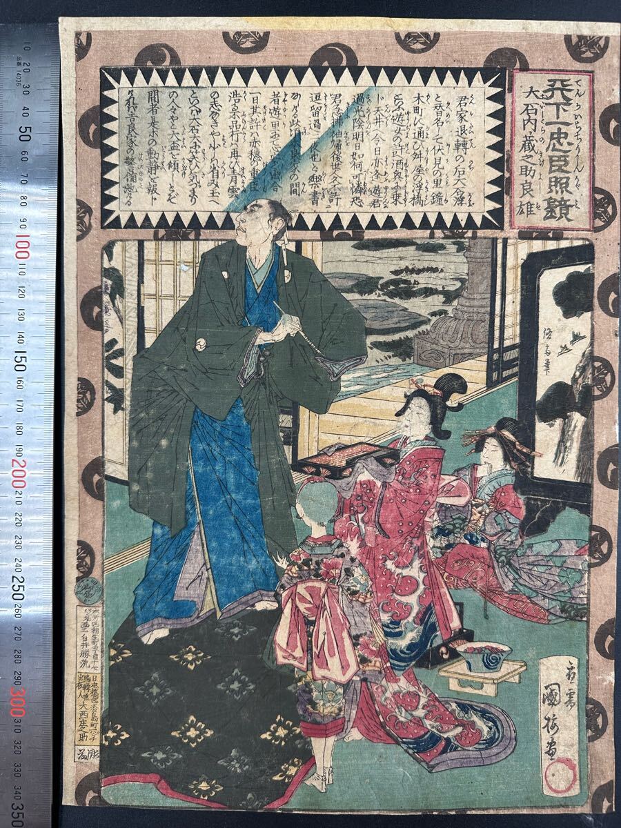 【真作】明治期 本物浮世絵木版画 歌川国梅「天下一忠臣照鏡 大石内蔵之助良雄」役者絵 大判 錦絵 保存良い 裏打ち