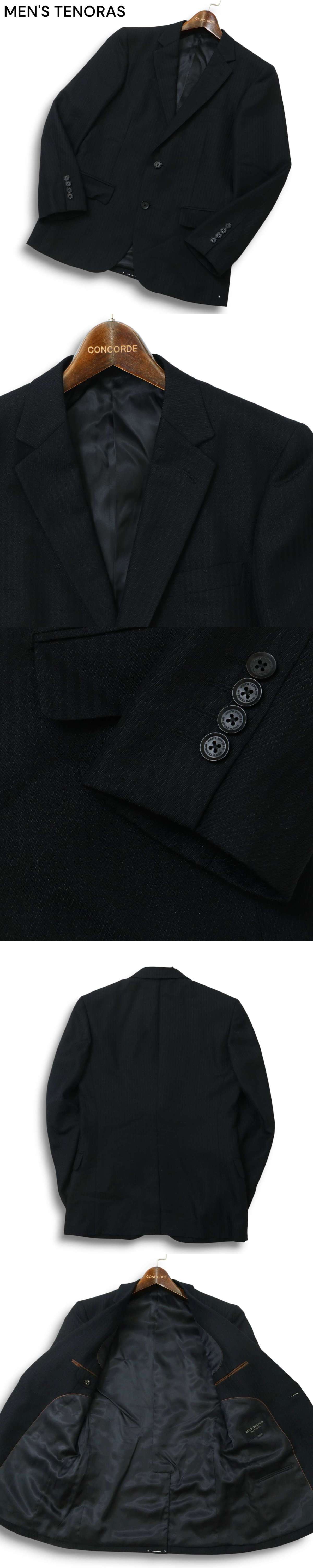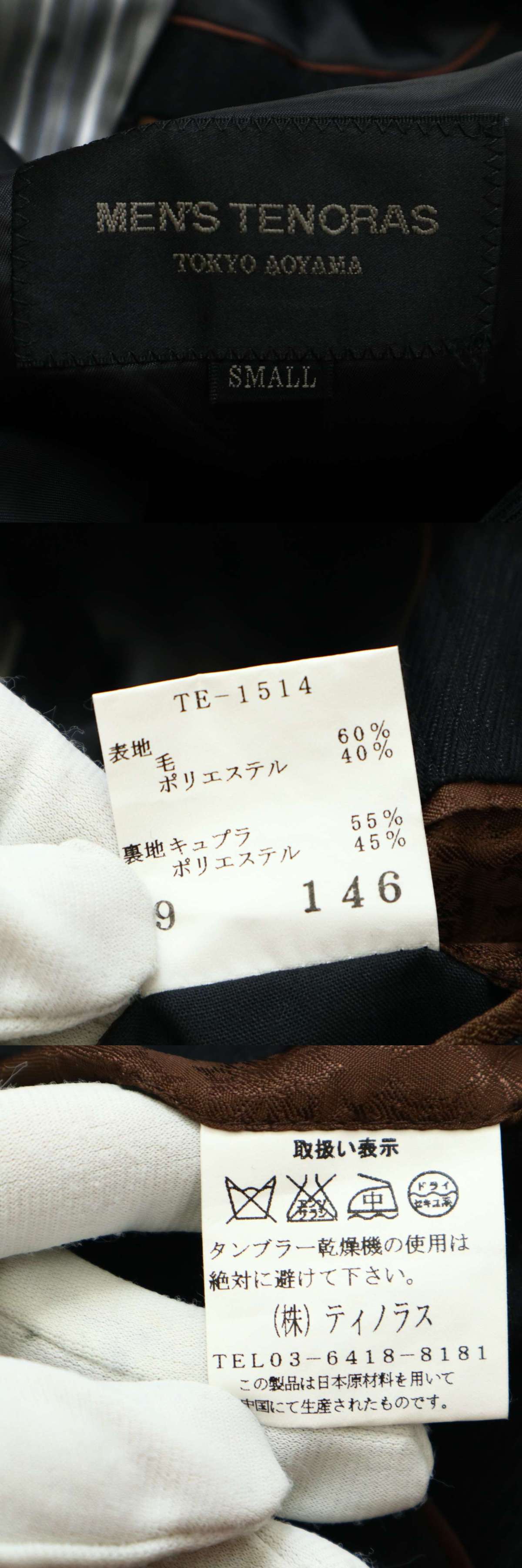 MEN'S TENORAS メンズティノラス 通年 総裏 ウール★ ストライプ アンコン テーラード ジャケット Sz.S メンズ 黒