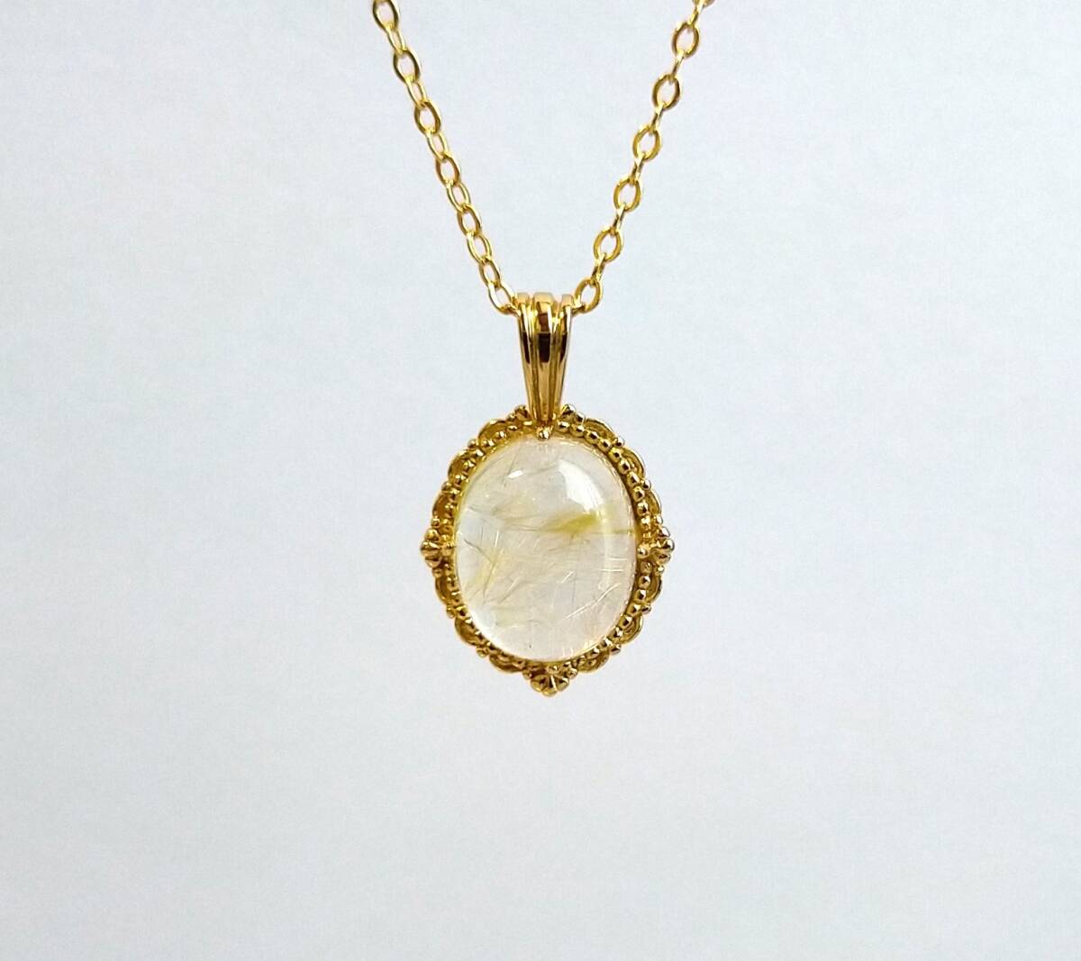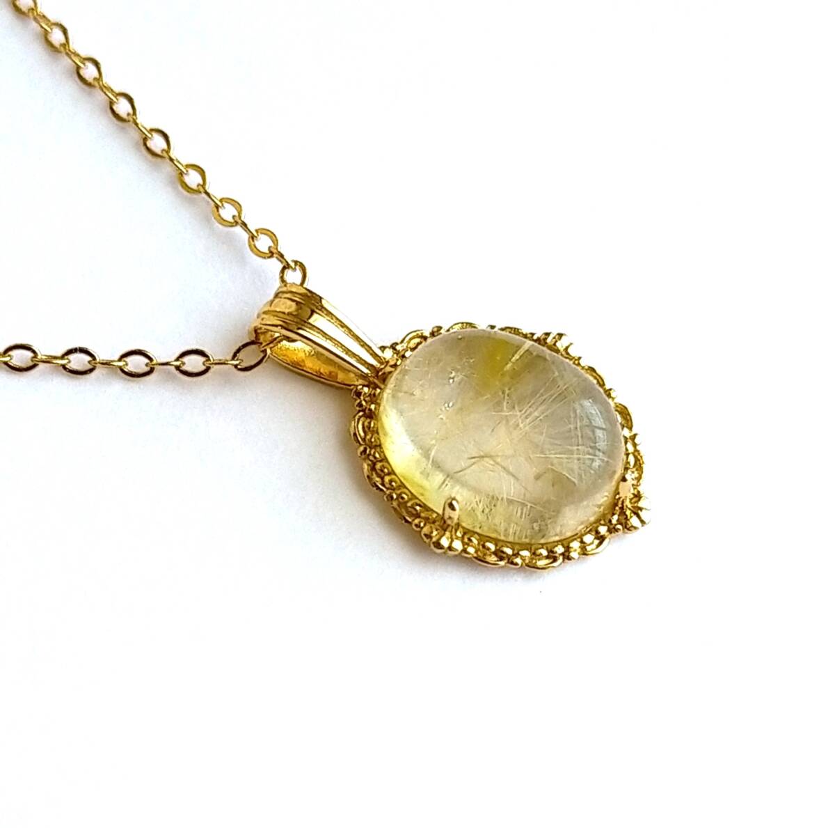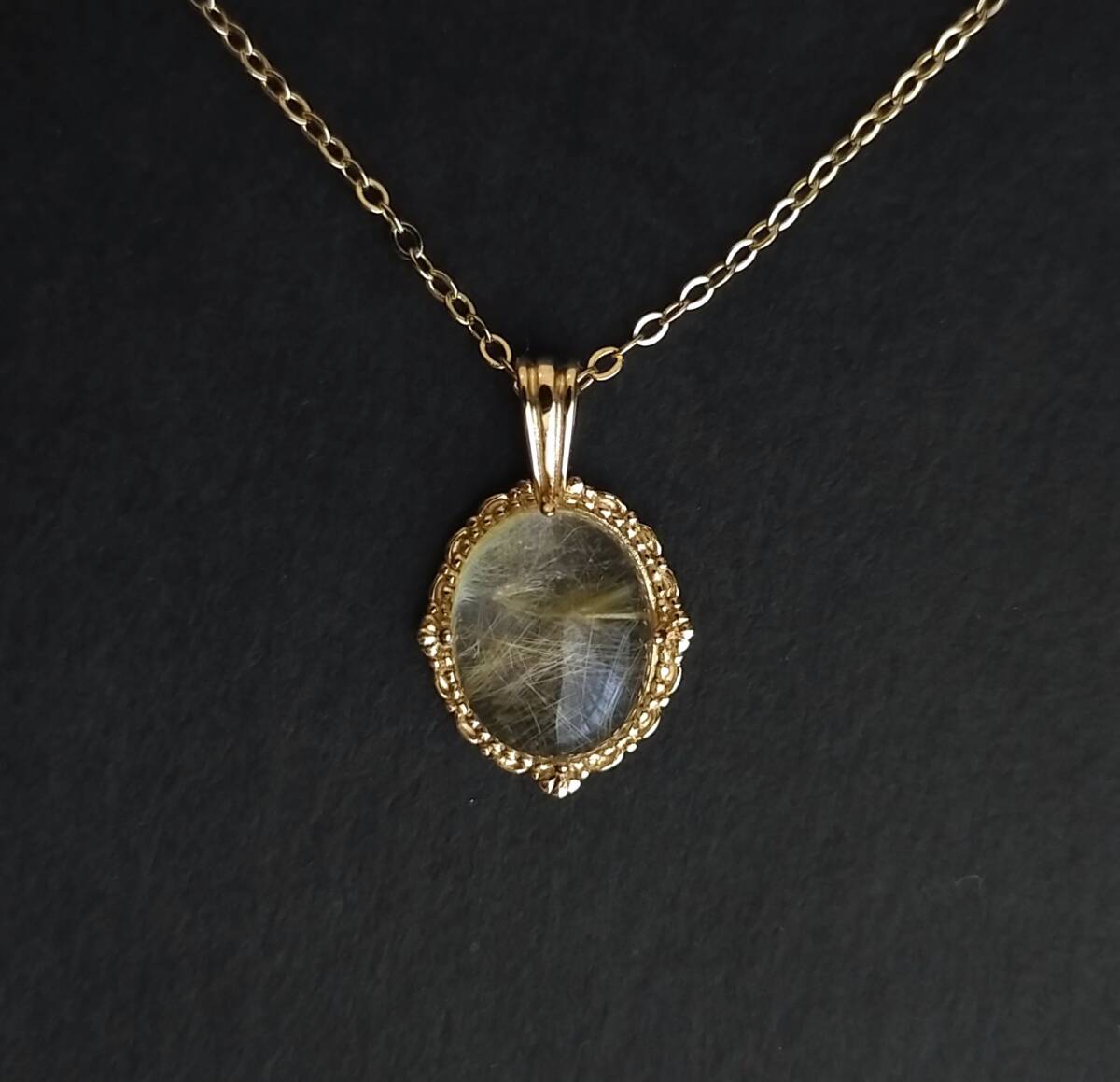 ルチルクオーツ ネックレス レトロデザイン シルバー925 オーバル ゴールドルチル ルチルクォーツ ペンダント