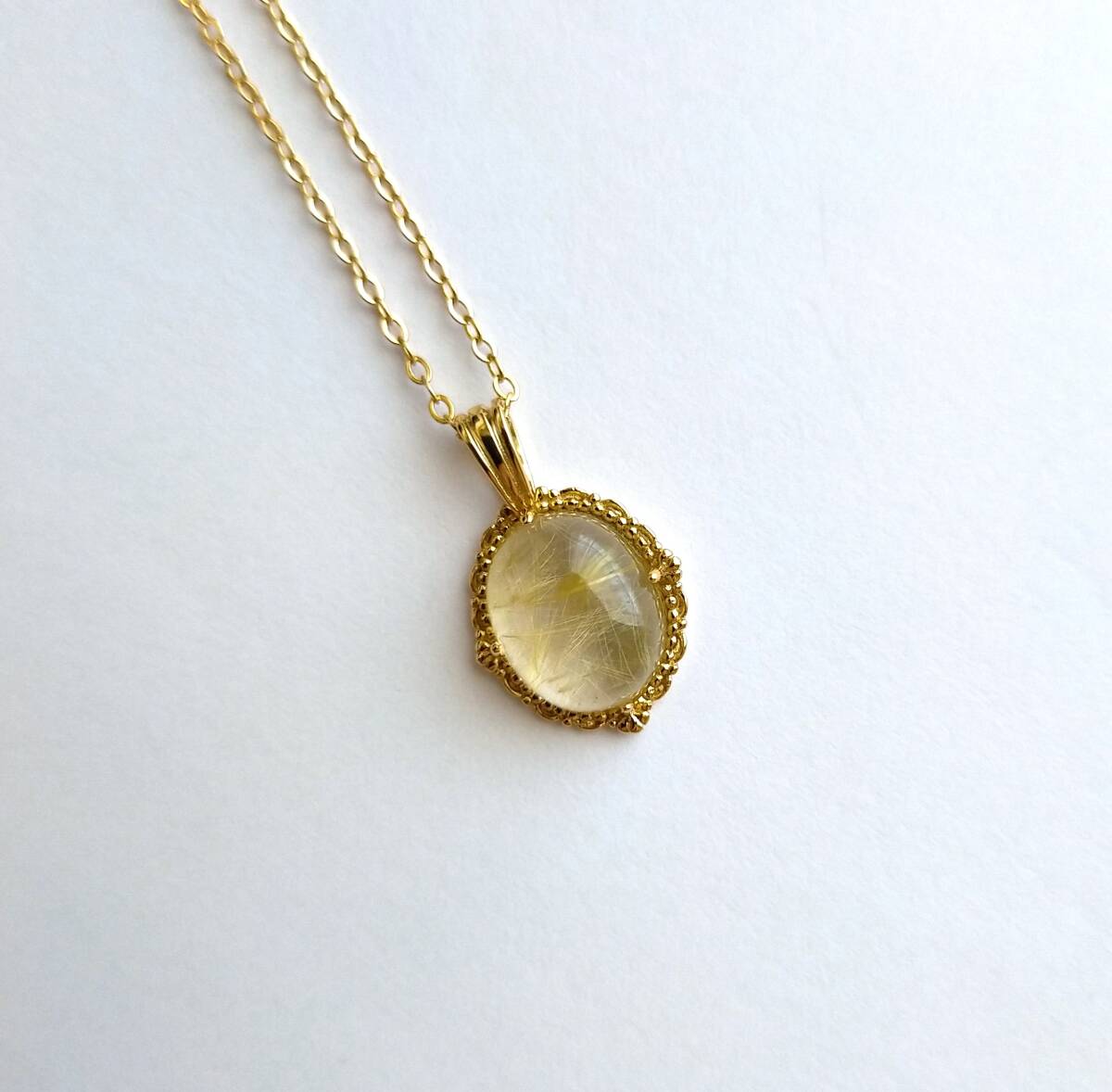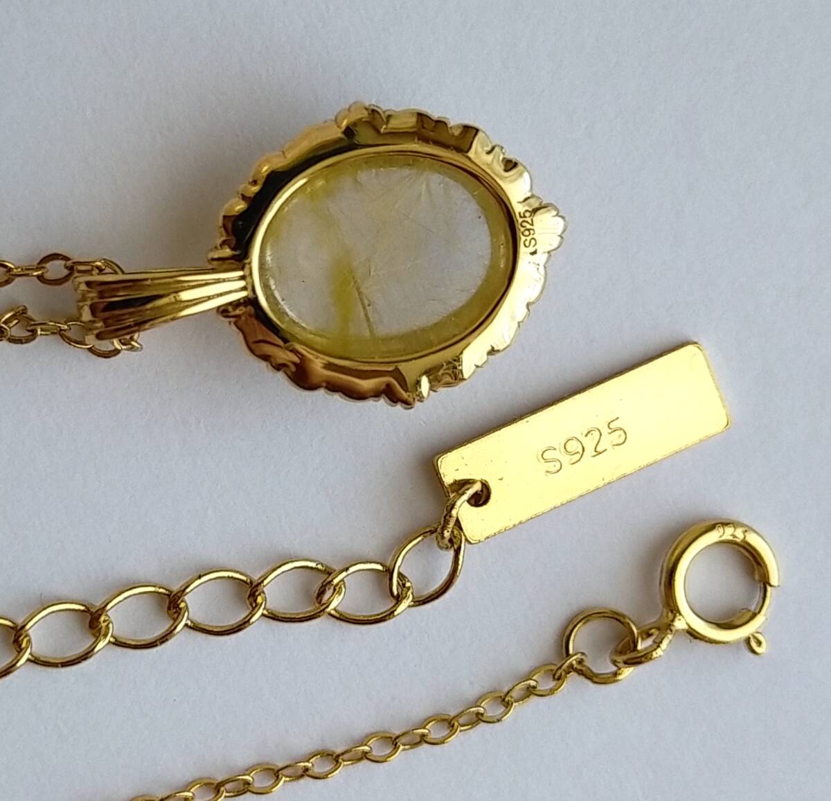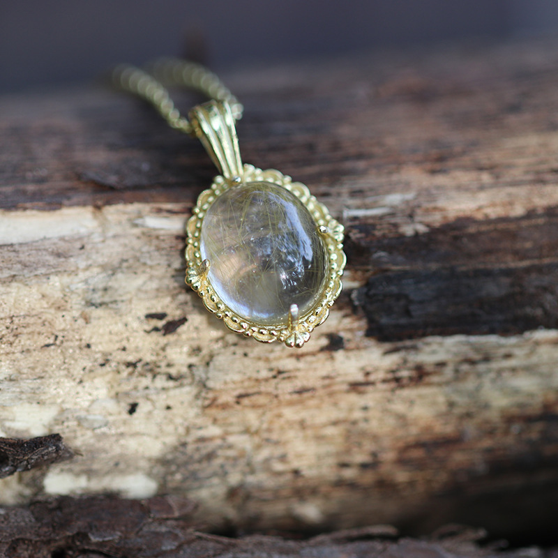 ルチルクオーツ ネックレス レトロデザイン シルバー925 オーバル ゴールドルチル ルチルクォーツ ペンダント