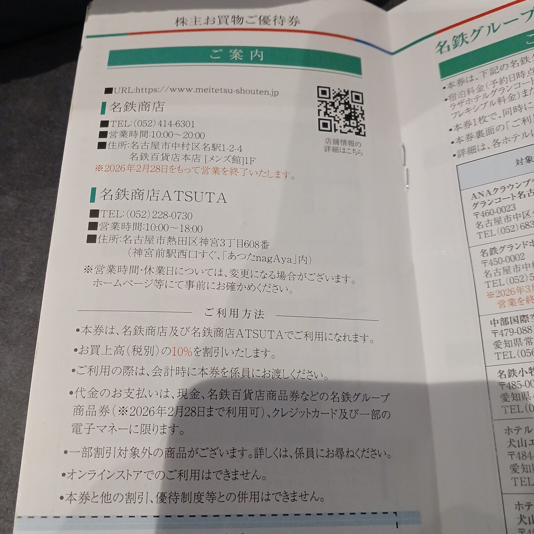 名鉄商店10%割引券2枚