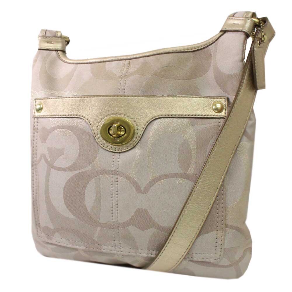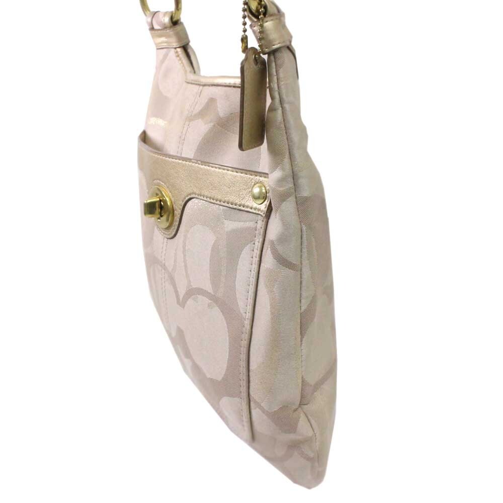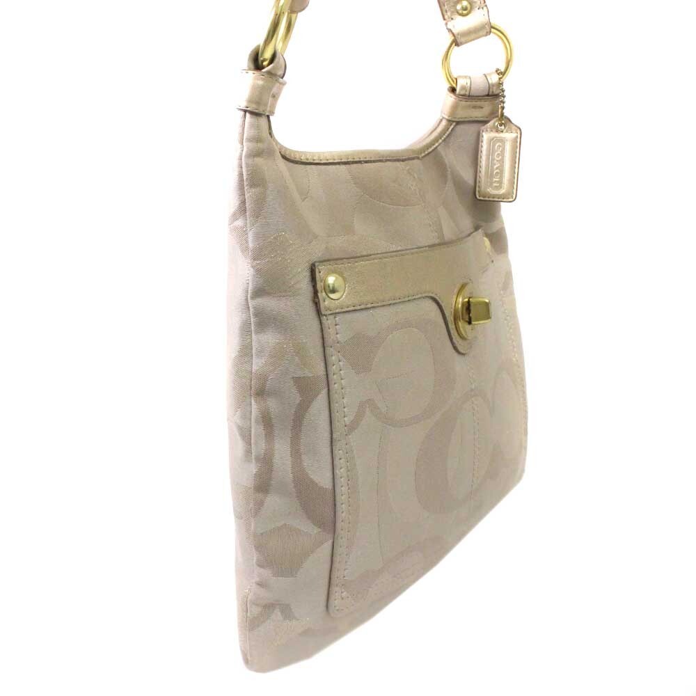 コーチ シグネチャー ショルダーバッグ レディース キャンバス レザー ベージュ ゴールド F18478 中古 COACH