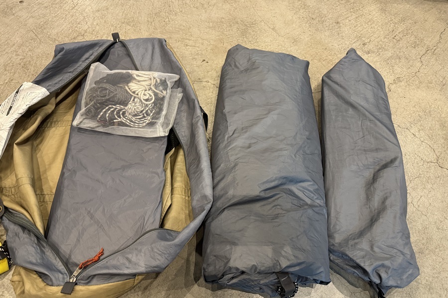 傷、汚れ、劣化等が見受けられます。広げての詳細未確認、設営しての状態未確認のお品物になります。