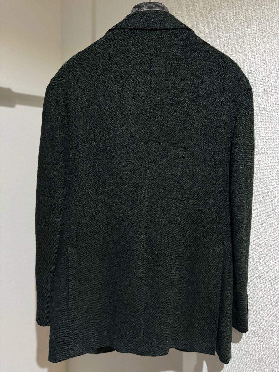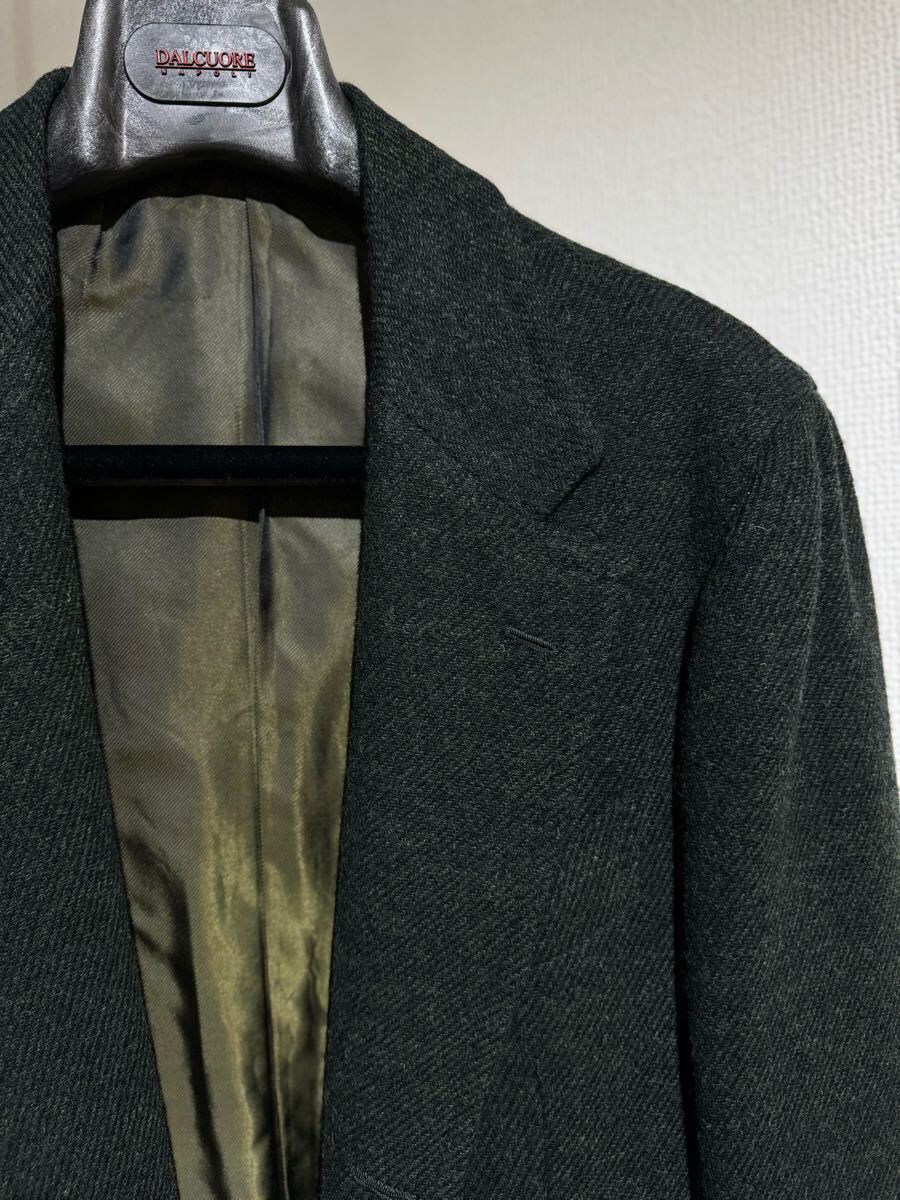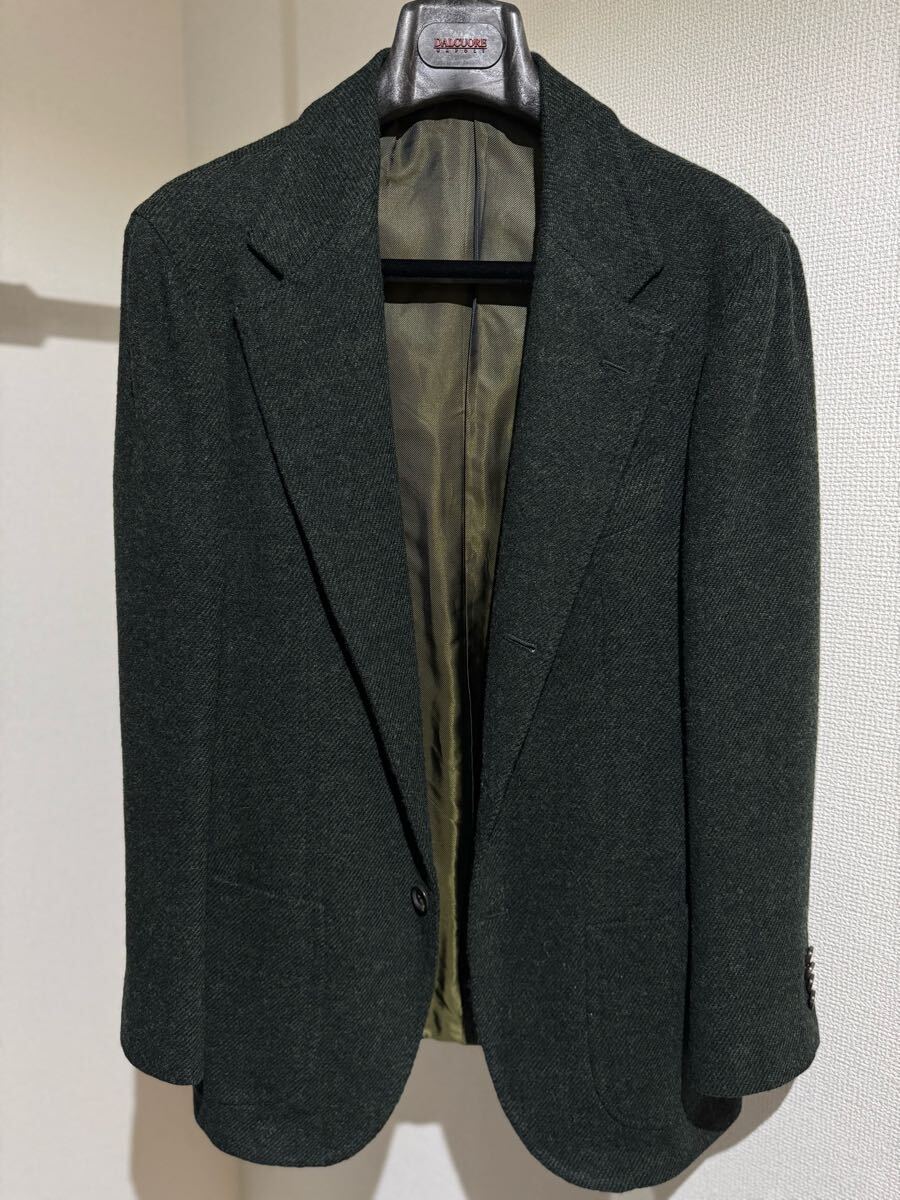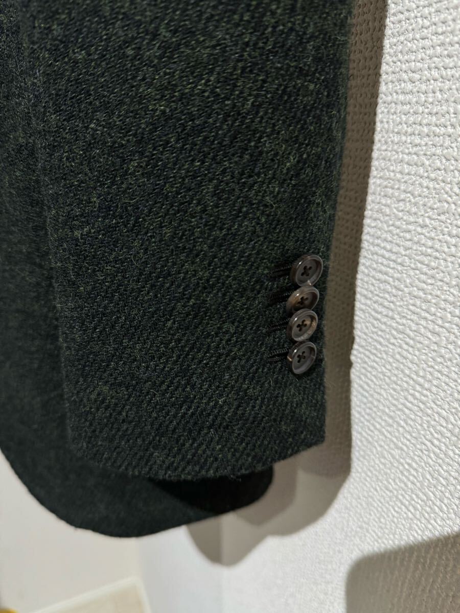 〈HOLLAND & SHERRY〉のツイードは見た目通りのがっしりとしたヘビーウェイト。それでいてしなやかな上品さも備えており、同生地メーカーらしい独特なエレガンスを感じる仕上がり。