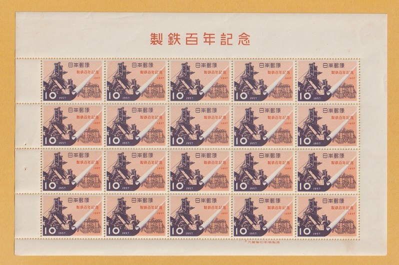 ●【記念切手】製鉄100年《10円》シート 1957年  未使用