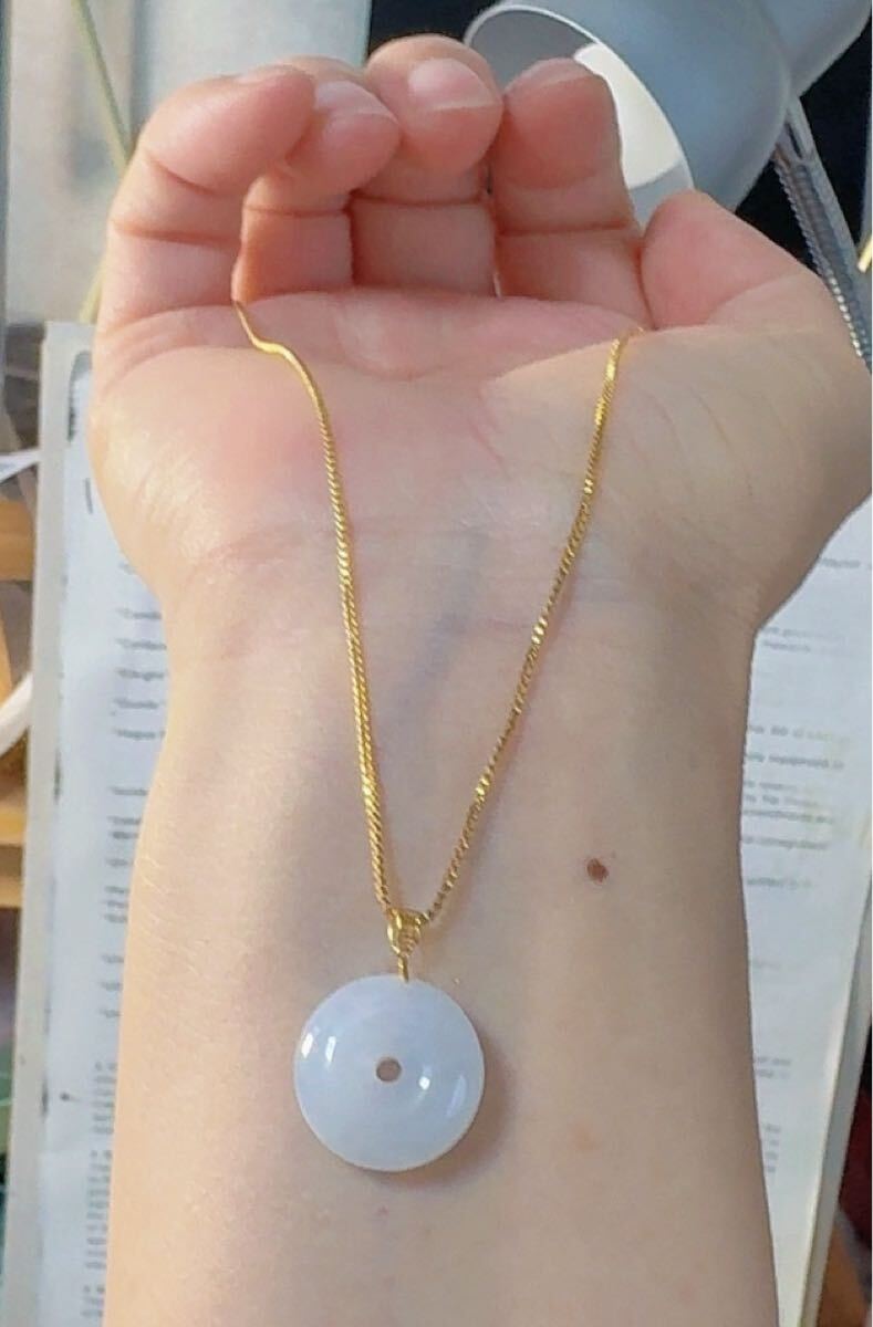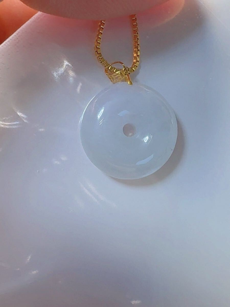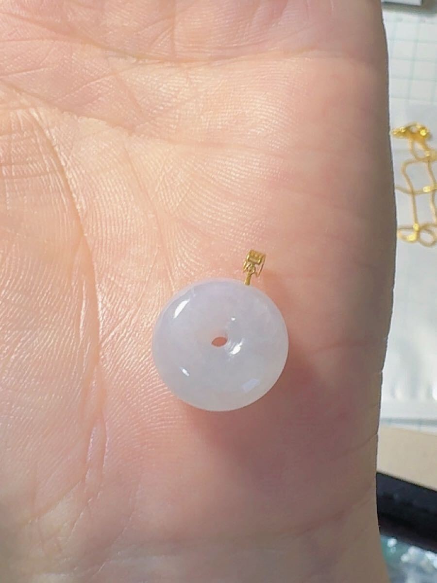 R2-0240天然本翡翠《本物保証》 白色翡翠 (画像通り)ミニ平安叩ペンダントK18 一点物 一品一図 希少 縁起物 お守り パワーストーン